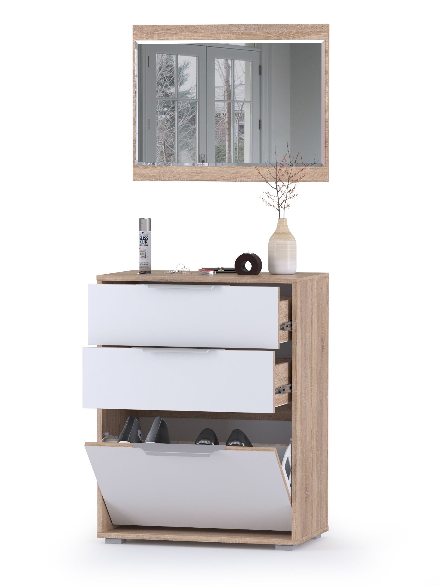 Обувница высокая с ящиком и зеркалом Куба № 1 - функциональный набор мебели для больших и малых прихожих. Стильная обувница широкая Куба 13.113 оборудована двумя выдвижными ящиками для мелочей и нишей для обуви за откидным фасадом. Откидная дверь обувницы широкой Куба 13.113 снабжена механизмом со специальными полками для размещения обуви. Удобная высота обувницы широкой Куба, 84 см., позволит использовании её в качестве подставки для сумок и подзеркальника. Зеркало навесное Куба - уникальный элемент прихожих, помогающий Вам всегда выглядеть идеально. Прямоугольная форма зеркала позволяет повесить его как горизонтально, так и вертикально, согласно Вашему дизайн-проекту. Обувница высокая с ящиком и зеркалом Куба - элементы из набора мебели для прихожих Куба.