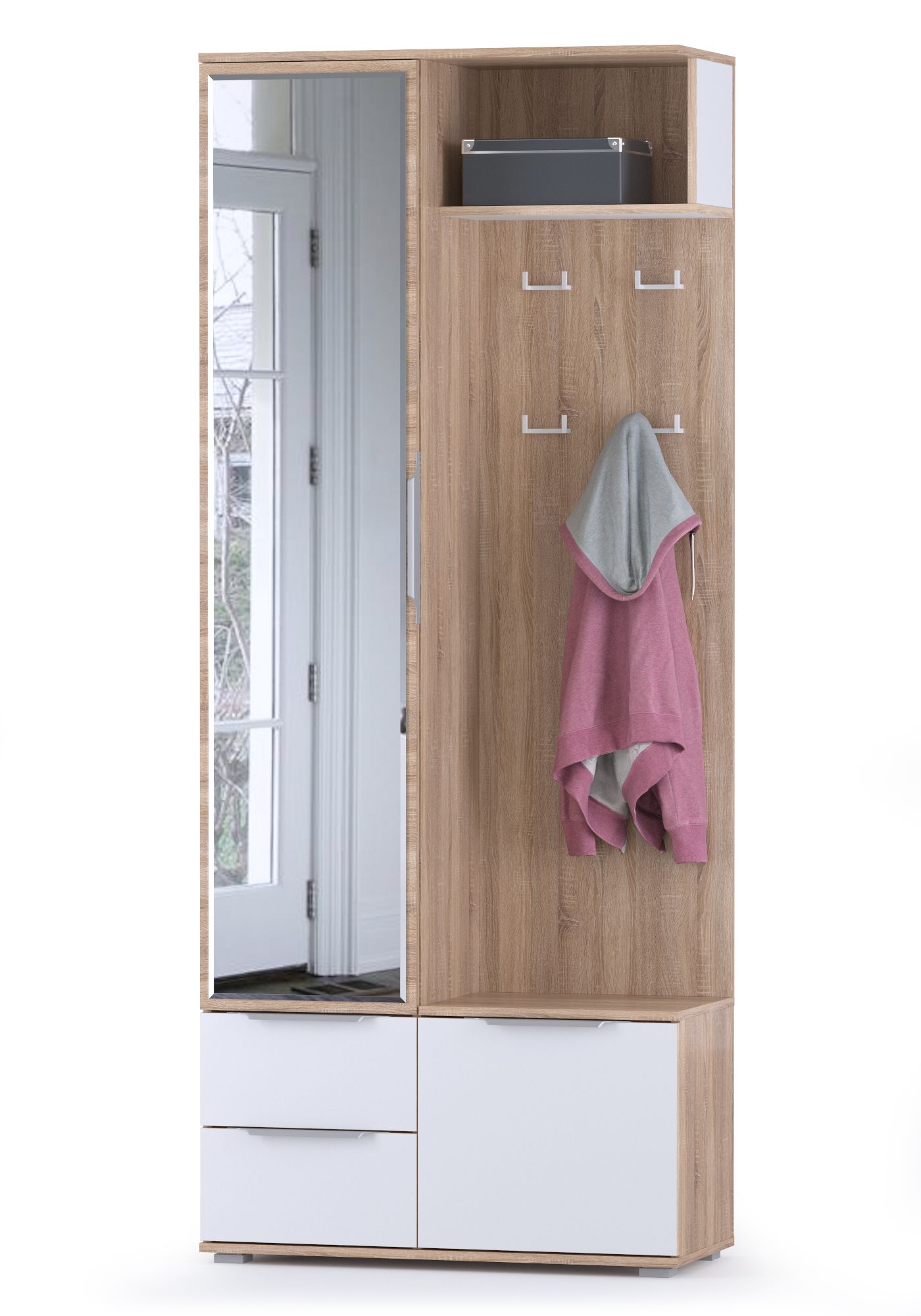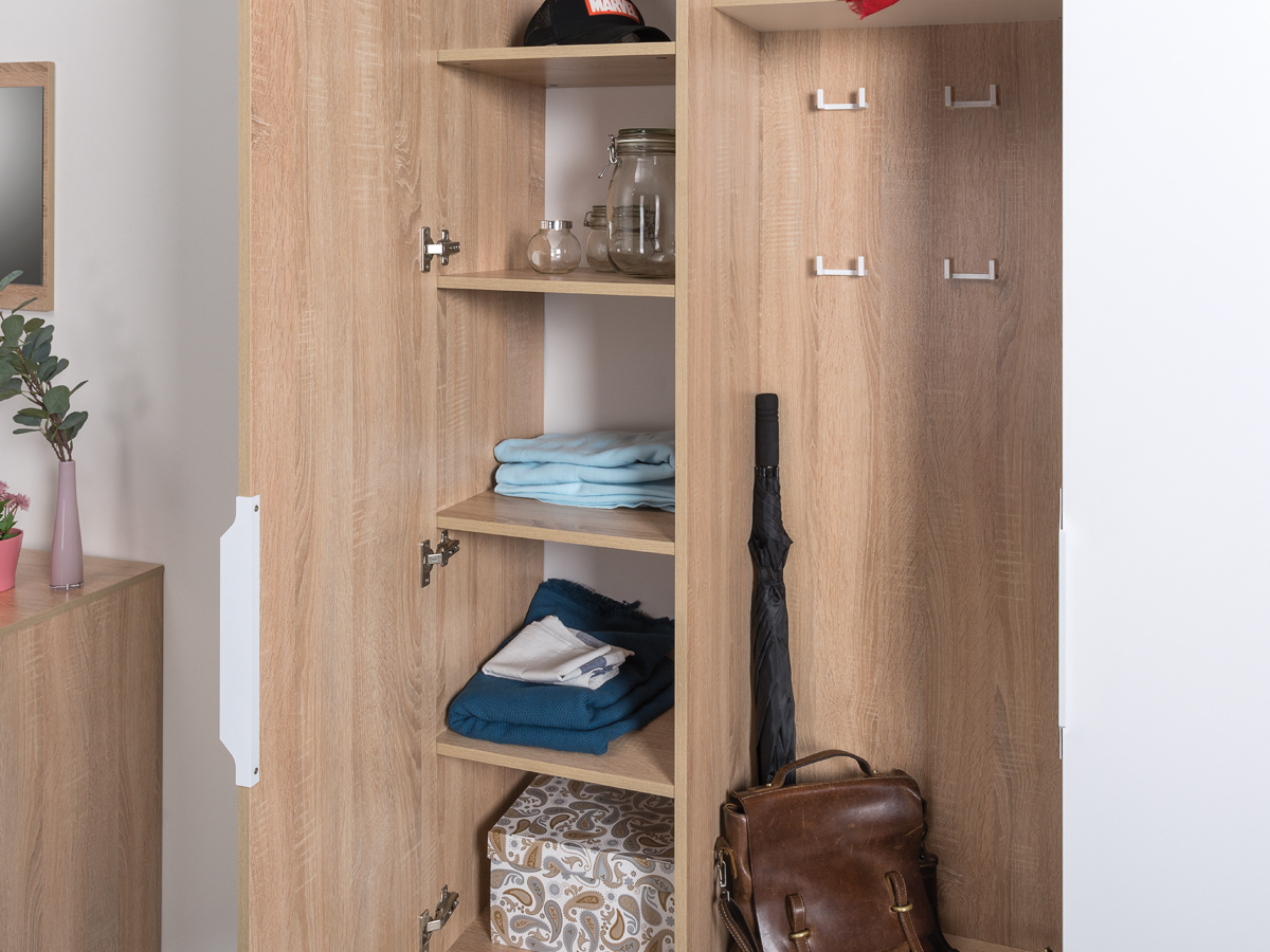 Прихожая Куба НМ № 17 с зеркалами и вешалкой для одежды - обладательница всегда ценных достоинств - практичности, удобства и красоты! Данная комплектация гарнитура Куба будет удобна для обустройства домашней прихожей или дачи, интересна и как офисный вариант. Прихожая Куба № 17 создаст комфортный, функциональный и безопасный интерьер, украсит уникальной эстетикой белоснежных фасадов. Многофункциональный шкаф Куба 10.14 удобно комбинирует открытую вешалку и одностворчатый шкаф с двумя выдвижными ящиками. Распашная дверь одностворчатого шкафа декорирована зеркалом во всю её длину, внутри шкаф оборудован тремя съёмными полками. Открытая вешалка, с четырьмя крючками для одежды, имеет антресольную полку для головных уборов и распашное отделение для обуви. Универсальная сборка набора мебели прихожей Куба № 17 позволит составить максимально эргономичный гарнитур. Дизайнеры прихожей Куба, объединив эстетику и передовую технологию, создали элегантный гарнитур в современной стилистике. Пастель и древесная фактура корпусов прихожей Куба согревают природной теплотой визуальную прохладу белоснежных фасадов мебели. Актуальный тренд - минимальное декорирование мебели позволяет сформировать лаконичные, интересные ансамбли для любых помещений. Незамысловатые формы и абсолютная эргономичность прихожей Куба делают благородную элегантность интерьеров по-домашнему уютной.