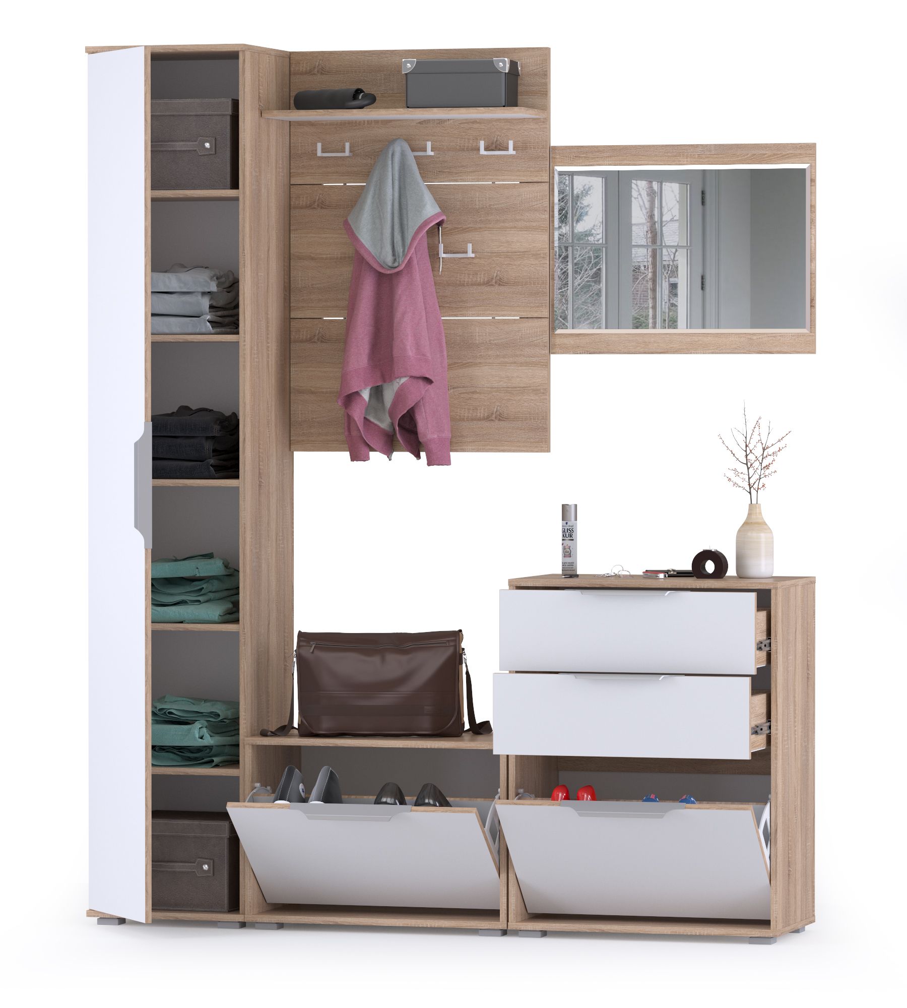 Куба Прихожая № 20 - обладательница всегда ценных достоинств - практичности, удобства и красоты! Данная комплектация гарнитура Куба будет интересна семье с детками для обустройства домашней прихожей или дачи. Куба Прихожая № 20 способна, буквально на нескольких квадратных метрах, создать комфортный и функциональный интерьер. Стильный набор - вешалка для верхней одежды, две обувницы, пенал и зеркало - оптимальный вариант эргономичной прихожей. В двух обувницах вполне достаточно места, чтобы хранить отдельно детскую обувь, что особенно удобно при утренних сборах. Откидные двери обувниц Куба снабжены механизмом со специальными полками для аккуратного размещения сезонной обуви. Обувница с ящиками Куба дополнена двумя выдвижными ящиками для мелочей. Крышка обувницы послужит подзеркальником. Низкая обувница может быть использована ещё и в качестве подставки для сумок и банкетки для переобувания. Вешалка для верхней одежды - разумная традиция хранения сезонной одежды, позволяющего ей лучше проветриться и просохнуть. Открытая вешалка Куба 10.122 выполнена в виде панели из трёх полос, соединённых вставками, что визуально разгружает изделие. Настенная вешалка оборудована пятью стильными, пластиковыми двухрожковыми крючками для одежды, сумок и зонтиков. Полка, расположенная над крючками вешалки Куба Полка 10.122, предназначена для хранения головных уборов. Пенал Куба Шкаф 13.29, с пятью полками за распашной дверкой, практично дополняет систему хранения небольшой прихожей Куба № 20. Зеркало навесное Куба - уникальный элемент прихожей, помогающий Вам всегда выглядеть идеально. Универсальная сборка набора мебели прихожей Куба № 20 позволит составить максимально эргономичный гарнитур. Дизайнеры прихожей Куба, объединив эстетику и передовую технологию, создали элегантный гарнитур в современной стилистике. Пастель и древесная фактура корпусов прихожей Куба согревают природной теплотой визуальную прохладу белоснежных фасадов мебели. Актуальный тренд - минимальное декорирование мебели позволяет сформировать лаконичные, интересные ансамбли для любых помещений. Незамысловатые формы и абсолютная эргономичность прихожей Куба делают благородную элегантность интерьеров по-домашнему уютной.