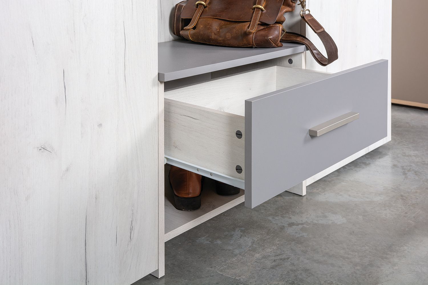 Описание линии мебели для прихожих Юнона: Прихожие Юнона - стильная и практичная мебель для современной прихожей. Мебель Юнона отличает лаконичный дизайн в сочетании с максимальной функциональностью. Прямые линии, сочетание светлых (дуб белый) и тёмных тонов (серый шифер), зеркала, правильные аксессуары - всё подчёркивает особенный характер мебели Юнона. Вашему вниманию представлены комод, шкаф двустворчатый и шкаф навесной, зеркало, вешалка и тумба для обуви. При помощи этих модулей Вы составите оптимальную обстановку в прихожей дома или офиса. Прихожая Юнона удобна в использовании - функциональное наполнение каждого элемента продумано до мелочей. Гарантией долгой службы будут высокие критерии качества производства, материалов и фурнитуры мебели Юнона. Выполнена прихожая Юнона по строгим стандартам европейской мебели, процесс производства автоматизирован и компьютеризирован.