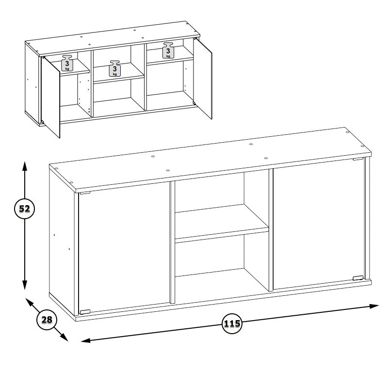 Максимальная нагрузка на каждую полочку: 3 кг.