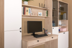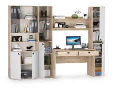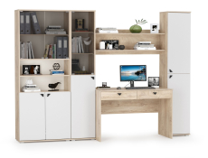 Описание коллекции мебели для домашнего офиса Бостон: Домашний офис Бостон - коллекция удобной и функциональной мебели для современного рабочего места. Серию Бостон составляют 7 практичных модулей, компонуя которые, можно составить комплект мебели в соответствии с Вашим желанием и выделенным бюджетом. Компьютерный стол, открытая и закрытая полочки, три шкафа и комод помогут реализовать Ваш проект, и составят эргономичную обстановку домашнего офиса. Модули практичны, имеют универсальную сборку, что расширяет варианты компоновок и расположения в интерьере кабинетов, составляя максимально комфортную рабочую атмосферу. Стильный дизайн мебели Бостон подчёркнут сочетанием красивого древесного цвета корпуса, белых фасадов, чёрных матовых металлических ручек, расположенных в специальных угловых углублениях на дверках и тонированного стекла витрин, открывающихся при помощи механизма push (нажмите на уголок и дверка откроется). Современный процесс производства мебели при постоянном контроле качества результатов и материалов гарантируют длительный срок службы и соответствие высоким стандартам. Корпус мебели Бостон изготовлен из ламинированной ДСП 16 мм., сертифицированной к изготовлению детской мебели. Глухие дверки шкафов и комода выполнены из прочной и экологичной МДФ плиты, ламинированной плёнкой ПВХ с тактильно приятным покрытием софт-тач. Торцы деталей мебели защищены кантом ПВХ 0,4 мм. и 2 мм, украшающим изделия, защищающим от механических повреждений и продлевающим срок службы. В сборке мебели используется фурнитура высокого качества проверенных временем поставщиков. Глухие распашные двери закреплены на четырёхшарнирных петлях, дверки-витрины из тонированного стекла - на осевых петлях, выкатные ящики - на металлических шариковых направляющих полного выдвижения. Поставка мебели производится в разобранном виде, в прочной упаковке, защищающей Вашу покупку при транспортировке и хранении. К каждому изделию прилагается гарантийный талон и подробная инструкция по сборке и эксплуатации в комплекте с необходимой для сборки фурнитурой.
