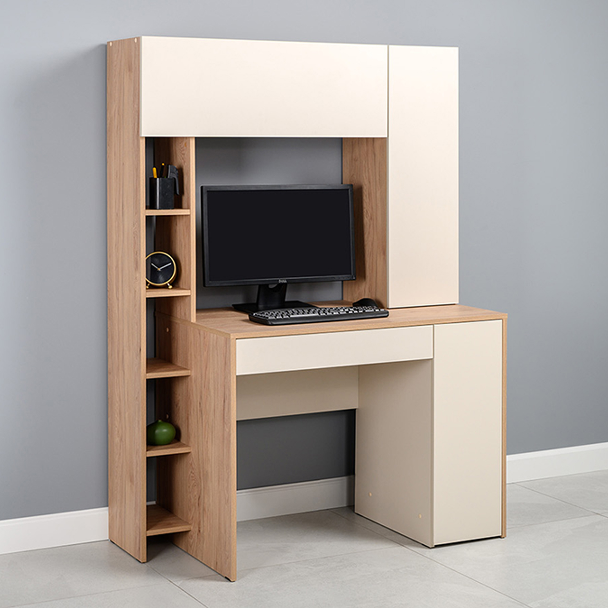 Столы производятся в различных комбинированных цветах ДСП - дуб золотой/белый, дуб крафт серый/шёлковый камень, дуб сонома/белый, антрацит/тёмно-серый, гикори рокфорд натуральный/сатин и гикори рокфорд натуральный/дымчатый зелёный..