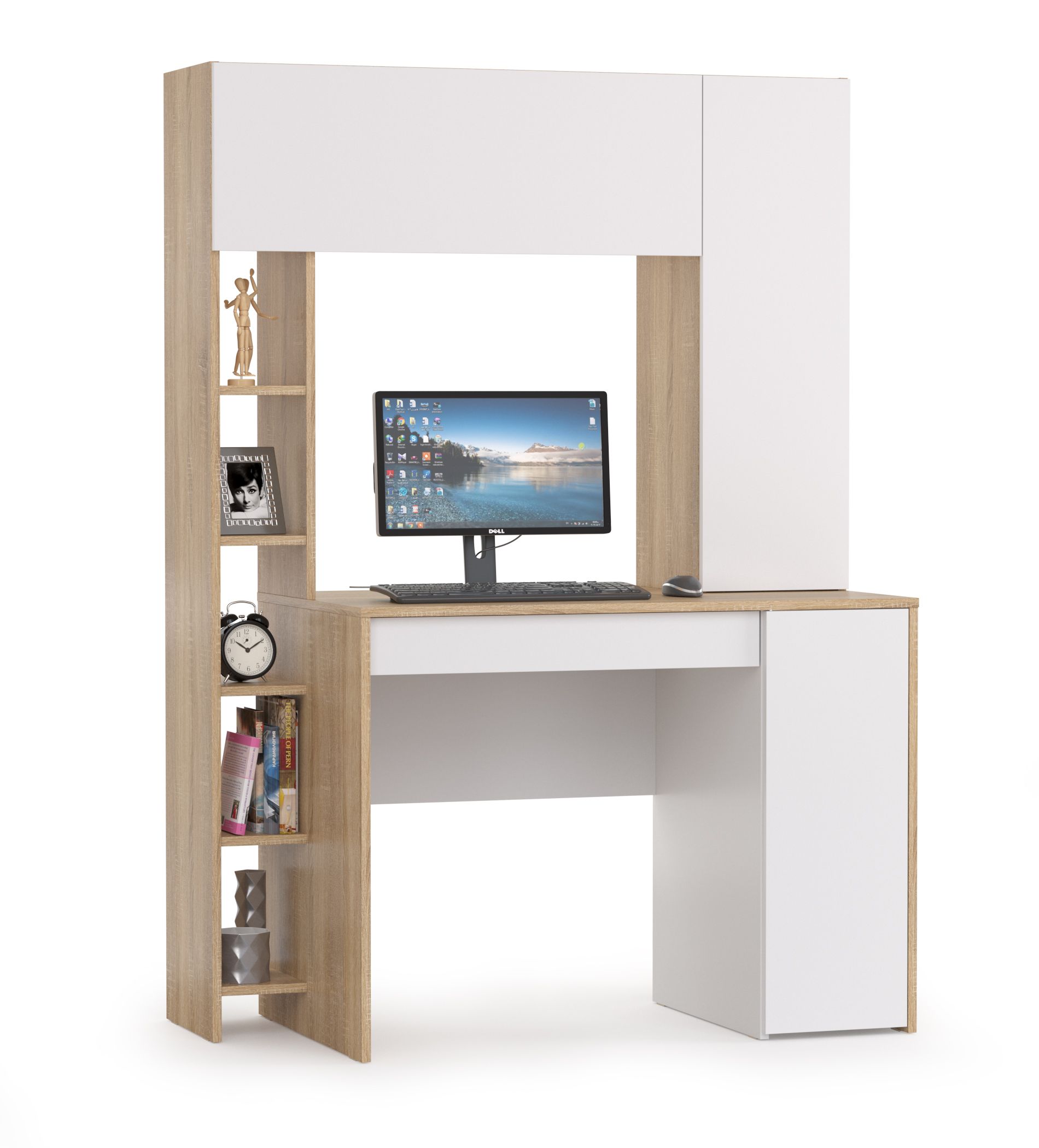 Стол компьютерный Комфорт 12.71 - удачное сочетание комфорта и делового стиля. Классический, удобный, устойчивый стол с тумбой под системный блок и выдвижным ящиком для канцелярии, дополнен практичной надстройкой. Надстройка с вместительной нишей за откидным фасадом и распашным отделением с полкой, выделяет на столе удобную нишу для монитора. Закрытые отделения стола компьютерного Комфорт 12.71 хранят деловые тайны, а пять полок стеллажа - документы, книги в удобной близости. Тумба расположена с правой стороны стола компьютерного, стеллаж - с левой. Дверки и ящик стола Комфорт 12.71 открываются за край фасада. Стол компьютерный Комфорт 12.71 - элемент из линии мебели Компьютерные столы Комфорт.