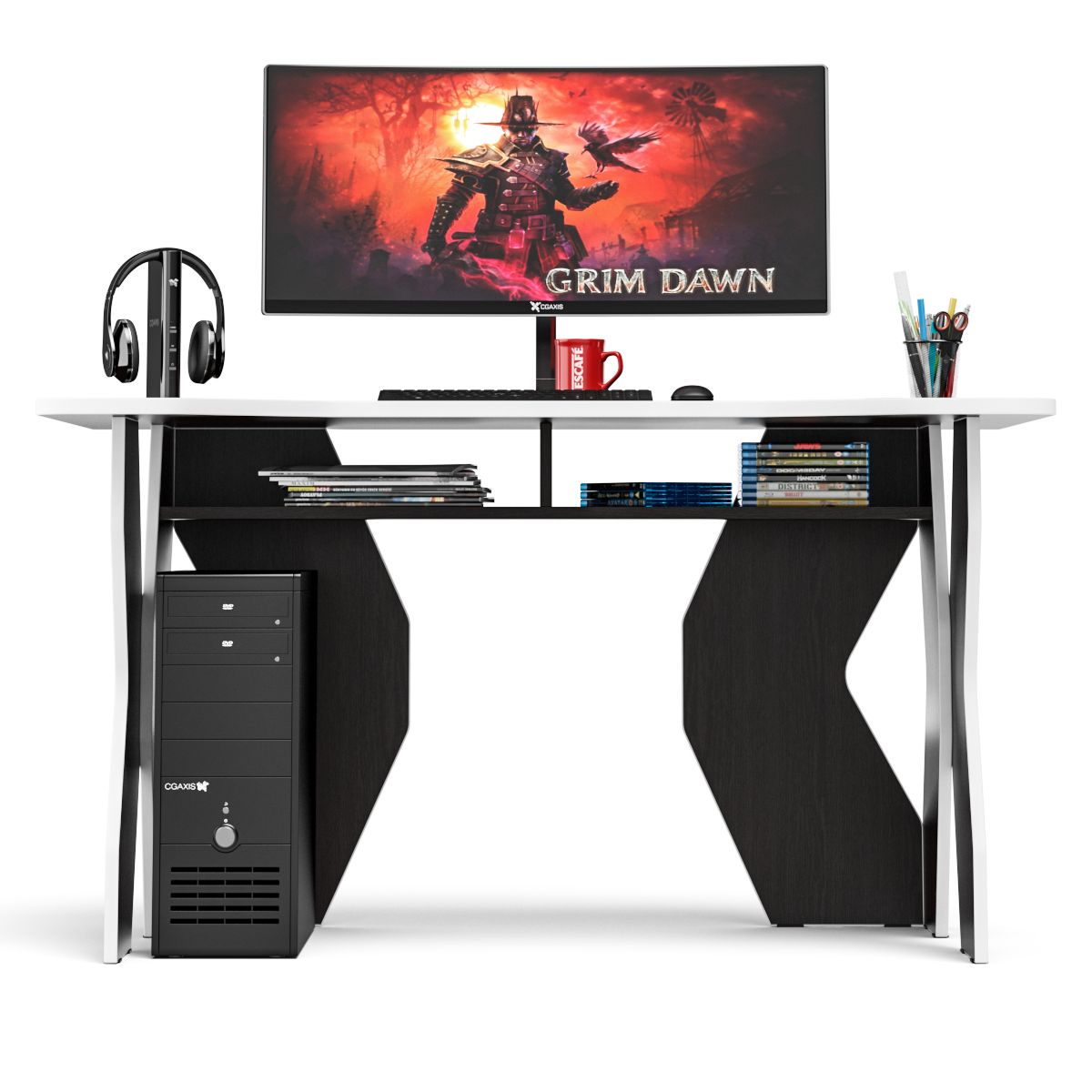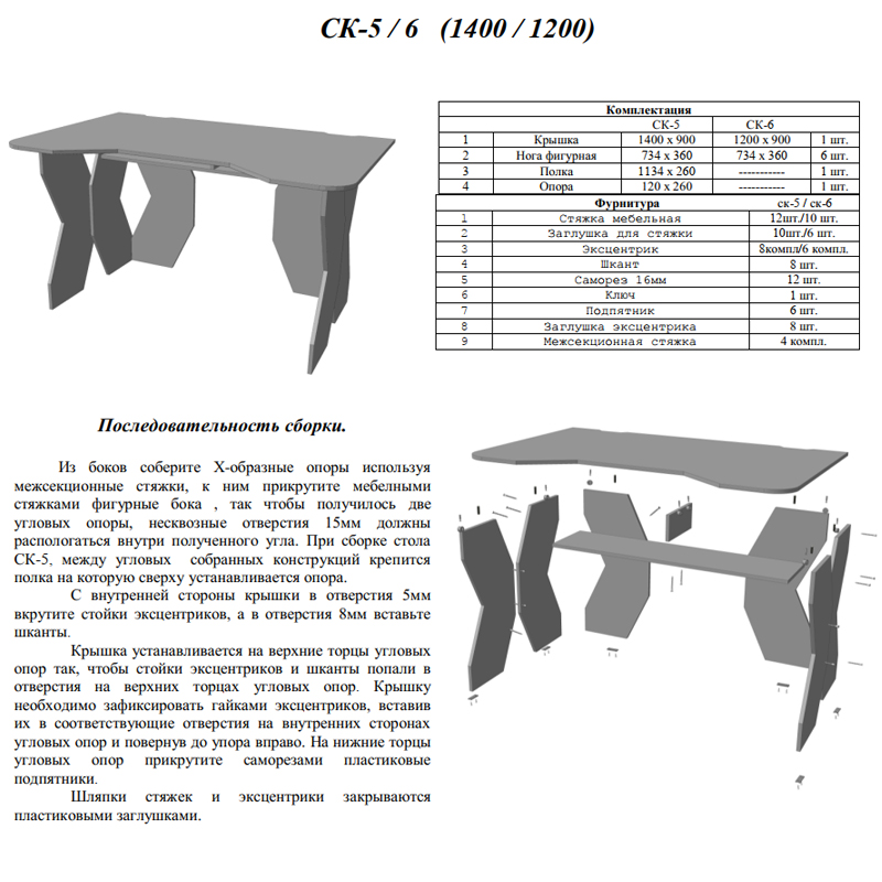 Стол для геймера Краб-5 - Ваш персональный игровой стол, с модным дизайном и желаемым функционалом. Эксклюзивный стол Краб-5 создан для поклонников виртуальных игр с сознанием важности комфорта при таком времяпрепровождении. Увлёкшийся «баталиями» игрок игнорирует увеличивающуюся нагрузку на руки, шею, позвоночник, что приводит к проблемам со здоровьем. Знания специфики компьютерных игр привели к созданию удобной модели стола для геймера с идеальной для игры формой столешницы. Широкая столешница, размером 140х90 см., с заботливо закруглёнными углами, вполне достаточна для размещения монитора и клавиатура. На столешнице имеется анатомической формы вырез, позволяющий удобно расположить локти, существенно снизив нагрузку на позвоночник. Под столешницей предусмотрена полка с дополнительной опорой посредине - для увеличения системы хранения и жёсткости конструкции. Дизайнерское решение данной модели стола для геймера рассчитано в основном на молодое поколение - это модный приём «ломаных линий». Неординарной формы опоры стола Краб-5 придают его силуэту динамику и создают особую атмосферу куража и экстравагантности. Контрастная, белая окантовка деталей стола цвета Венге - эффектная эстетическая изюминка, оживляющая стиль стола и интерьер в целом. Стол для геймера Краб-5 выполнен из ламинированной ДСП толщиной 16 мм., класса Е1, допустимого для производства детской мебели. Защита всех краевых поверхностей стола для геймера Краб-5 - противоударная кромка ПВХ. На нижних кромках опор стола предусмотрены пластиковые подпятники для защиты поверхности пола от механических повреждений. Поставляется стол для геймера СК5-1400 в разобранном виде, надёжно упакованным, с инструкцией и комплектом фурнитуры для сборки. Данная модель стола выполнена в цветах - белый/кромка венге и венге/кромка белая.