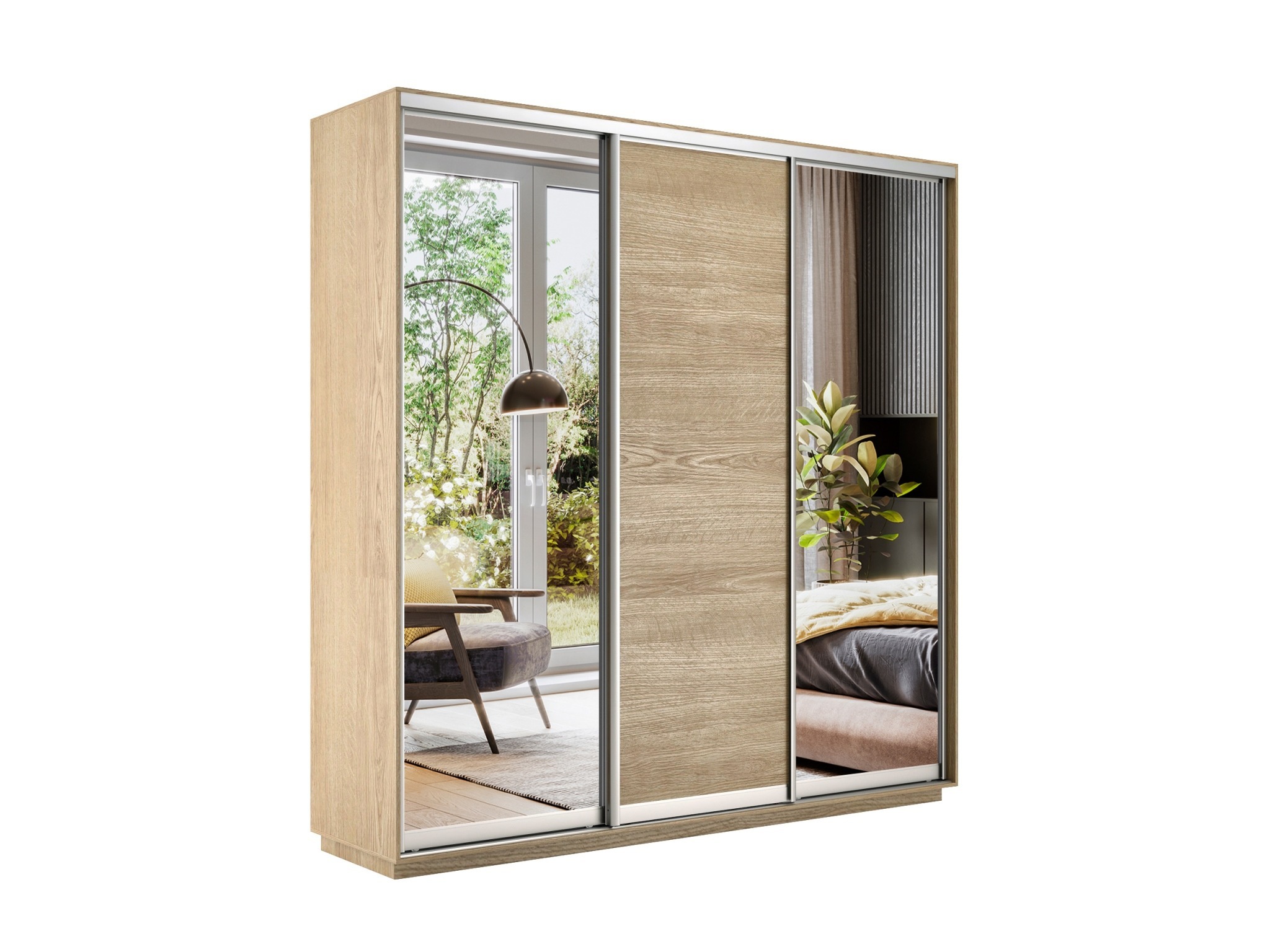 Отзывы о Столплит Шкаф-купе Экспресс Медиум (2 зеркала) трио 2400 x 2100 x 450 Дуб сонома