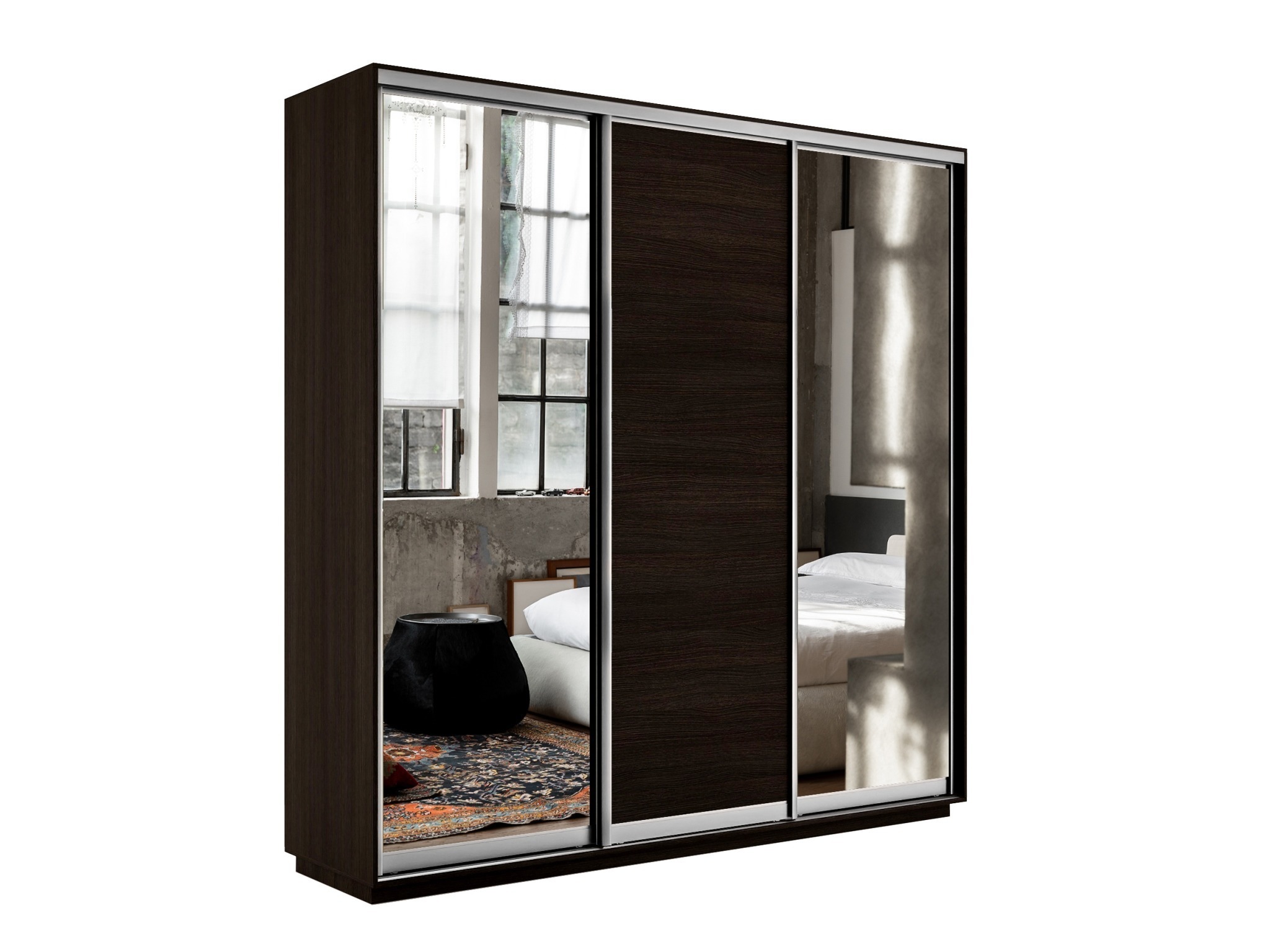 Отзывы о Столплит Шкаф-купе Экспресс Медиум (2 зеркала) трио 2400 x 2400 x 450 Венге
