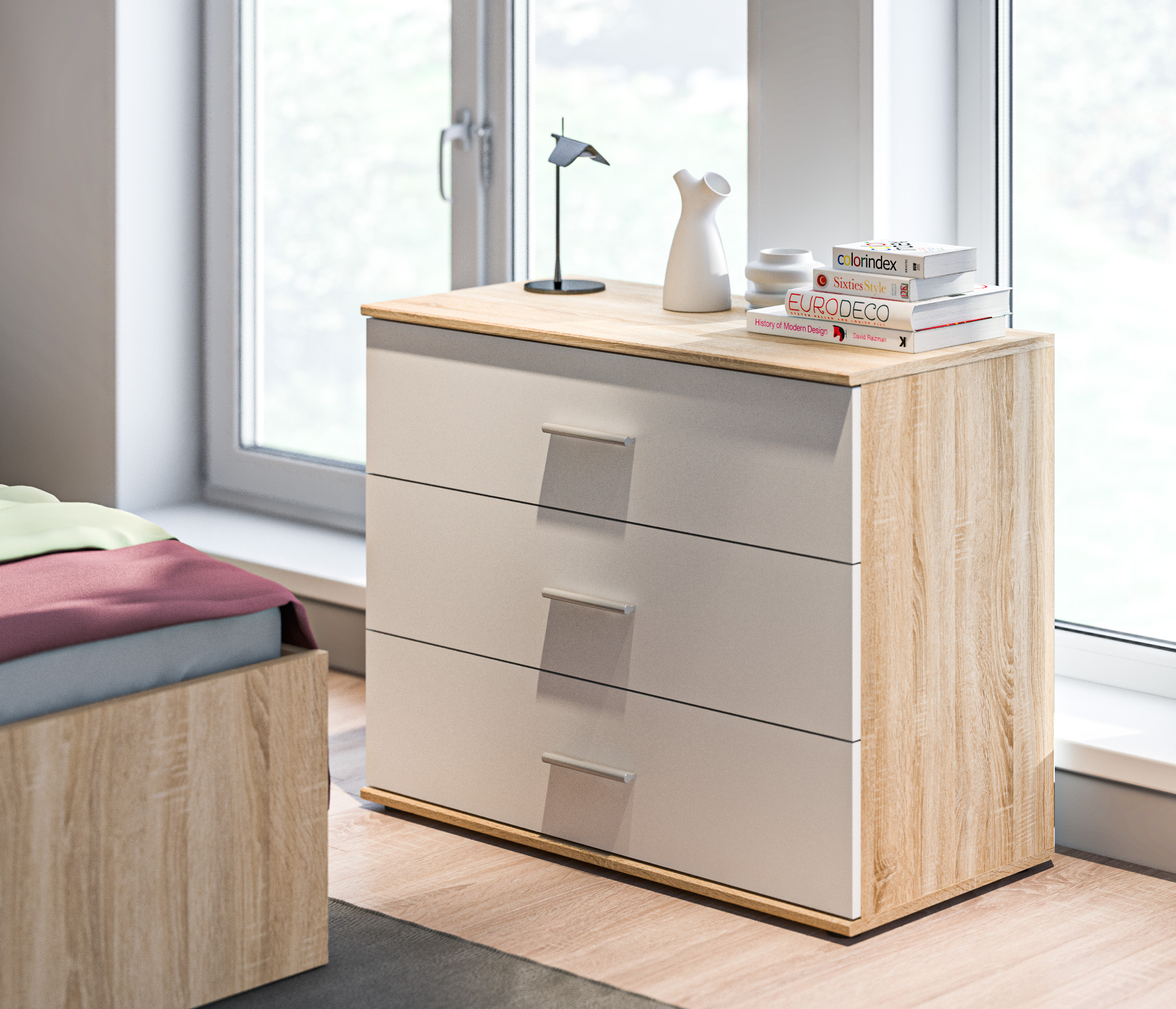 Мамбо СБ-2679 Кровать Дуб СономаМамбо СБ-2540/1.Н Комод Дуб Сонома/Белый
