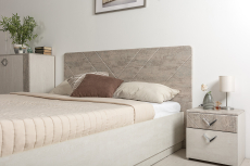 Спальня Амели - благодатный уголок царства Морфея! Комфортно оформить самые личные покои Вашего дома поможет спальня Амели - стильно, с профессиональным знанием вопроса и недорого! Практичная эргономика модулей коллекции в созвучии с нарядной геометрией стиля арт-деко - совершенная эстетика спальни Амели Моби. Художественные тонкости дизайна спальни Амели - имитация рисунка камня и нежности шёлковой ткани, мягкая нега белоснежной обивки. Жемчужина спальни Амели - роскошная кровать с мягкими спинками, может комплектоваться ортопедическим и подъёмным основаниями. Достойное дополнение кровати - миниатюрная тумбочка, туалетный столик с зеркалом, два вида комода, шкафная группа из четырёх предметов. Строгая симметрия формы, чёткие линии, максимальная высота шкафов, фактурные вставки, эксклюзивные ручки - акценты стиля арт-деко. Фрезеровка на фасадах мебели, зеркалах и декоративная прострочка мягких элементов кровати выполнены в виде полосок и зигзагов. Коллекция мебели для спальни Амели поможет обустроить комфортное, стильное и статусное пространство для Вашей семьи. Мебель для спальни Амели выполнена из ламинированной ДСП 16 мм, класса эмиссии Е1, с МДФ вставками, торцы - ПВХ-кромка. Лицевая фурнитура мебели для спальни Амели - блестящие хромированные ручки с удобной ребристой поверхностью обратной стороны. Распашные двери модулей спальни Амели на четырёхшарнирных петлях, выдвижные ящики на шариковых направляющих полного выдвижения. Поставляется мебель для спальни Амели в разобранном виде, упакованная в гофрокартон, с комплектом фурнитуры и инструкцией по сборке.