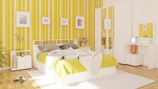 Классическая двуспальная кровать с трёхсторонним доступом к спальному месту размером 1600х2000 мм и изголовьем с хромированными стойками. В основании кровати (настил ДСП) расположены два вместительных ящика для хранения постельных принадлежностей и личных вещей. Предусмотрена универсальная схема сборки бельевых ящиков - они могут быть установлены с правой или с левой стороны кровати. Основание под матрас в комплекте, матрас приобретается отдельно. Фурнитура высоких стандартов. Ящики закреплены на металлических роликовых направляющих, обеспечивающих прямой, лёгкий ход. Корпус и фасады выполнены из ЛДСП, края закромлены плёнкой ПВХ, хромированная труба 25 мм. Поставляется в разобранном виде, надёжно упакованным, в комплекте с фурнитурой и инструкцией по сборке. Элемент из набора мебели для спальни Камелия.