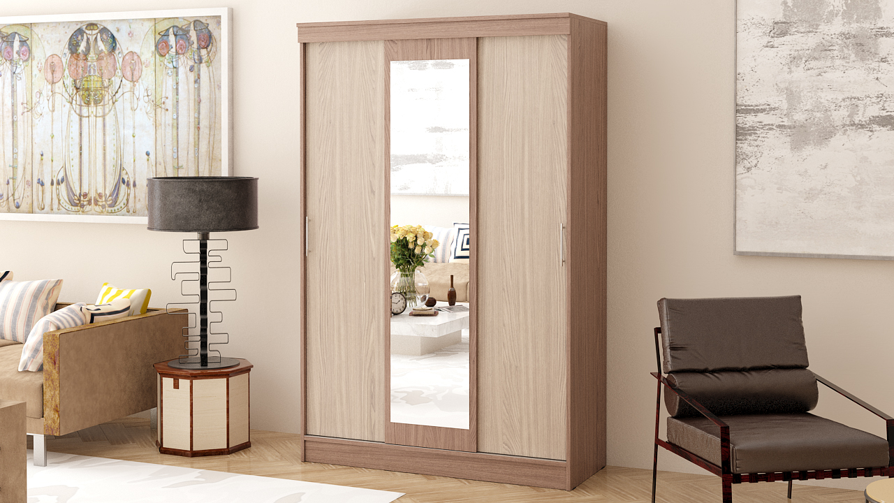 Элегантный, трёхдверный шкаф-купе 1300, с одним зеркальным фасадом во всю длину дверцы, продуктивно заменит распашной гардероб. Раздвижные дверки шкафа-купе обеспечивают быстрый и удобный доступ в вещам, и гораздо травмобезопаснее в эксплуатации. Экономия пространства, продуманная эргономика и вместимость - эти свойства шкафов-купе, конечно, присутствуют и в модели СВК-1300. Вполне традиционно и внутреннее наполнение шкафа-купе - два автономных отделения, разделённые жёсткой перегородкой. Справа у шкафа-купе - штанга для одежды на вешалках и антресольная полка, слева - бельевой отсек с четырьмя полками. Изюминка данной модели шкафа-купе - всегда модное щегольство контрастной палитры и респектабельная строгость линий. Классический стиль шкафа-купе гармонично дополнит ансамбль гостиной, прихожей, спальни, а компактность позволит сохранить место! Красота и функциональность шкафа в сочетании с отличным качеством исполнения, обещают удовольствие на долгие годы. Фурнитура высоких стандартов. Корпус и фасады выполнены из ЛДСП 16 мм., края закромлены плёнкой ПВХ. Поставляется в разобранном виде, надёжно упакованным, в комплекте с фурнитурой и инструкцией по сборке.
