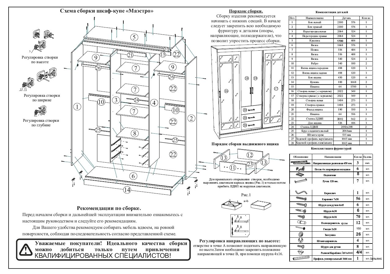 Сборка на следующий день. | 10 %, Минимальная стоимость сборки - 1000 рублей. Оплата после сборки мебели. |