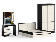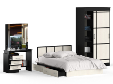 Наслаждению комфортом призваны служить практичные элементы набора - кровать 1400, стол косметический и шкаф-купе. Удобная двуспальная кровать, компактная, устойчивая, с модным дизайном - обоснованная заявка на уют зоны отдыха. Спальное место размером 1400х2000 мм., основание под матрас в комплекте (настил ДСП), матрас приобретается отдельно. В основании кровати расположены два вместительных ящика для хранения постельных принадлежностей и личных вещей. Предусмотрена универсальная схема сборки бельевых ящиков - они могут быть установлены с правой или с левой стороны кровати. Стол косметический представляет собой практичный тандем - столик плюс зеркало-трельяж! Устойчивость столику обеспечивают тумба, расположенная слева, и надёжная стойка - справа. Между тумбой и стойкой - полка. Тумба стола оборудована тремя выдвижными ящиками на шариковых направляющих, над ящиками - удобная открытая ниша. Трёхстворчатое зеркало, большое и удобное, позволит Вам рассматривать себя со всех сторон и корректировать причёску. Центральное зеркало крепится к стене на плоские навесы, боковые элементы являются движущимися. Систему хранения в спальном гарнитуре представляет всегда модный тренд - вместительный шкаф-купе. Современный двухдверный шкаф-купе с красивыми раздвижными фасадами сохранит Ваш гардероб, занимая минимум площади. За раздвижными дверками шкафа-купе расположены два автономных отделения, разделённые жёсткой перегородкой. Справа у шкафа - горизонтальная штанга для одежды на вешалках и антресольная полка, слева - бельевой отсек с четырьмя полками. Фурнитура высоких стандартов. Ящики закреплены на металлических роликовых направляющих, обеспечивающих прямой, лёгкий ход.Гарнитур выполнен из ЛДСП 16 и 22 мм, края закромлены плёнкой ПВХ. Поставляется в разобранном виде, надёжно упакованным, в комплекте с фурнитурой и инструкцией по сборке.