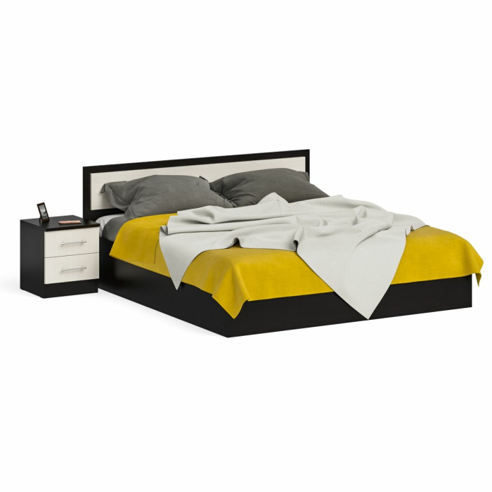 Лаконичность, простота и минимальный декор кровати - основа дизайна на все времена, без привязки к конкретной стилистике. Солидная двухспальная кровать привлекает внимание большим спальным местом, удобной и надёжной конструкцией. Основание под матрас в комплекте (настил ДСП), матрас приобретается отдельно. Компактная тумба прикроватная с двумя выдвижными ящиками - элемент системы хранения, подставка для светильника, модный декор. Фурнитура высоких стандартов. Ящики закреплены на металлических роликовых направляющих, обеспечивающих прямой, лёгкий ход. Выполнены из ЛДСП, края закромлены плёнкой ПВХ. Поставляется в разобранном виде, надёжно упакованным, в комплекте с фурнитурой и инструкцией по сборке. Элементы из набора мебели для спальни Фиеста.