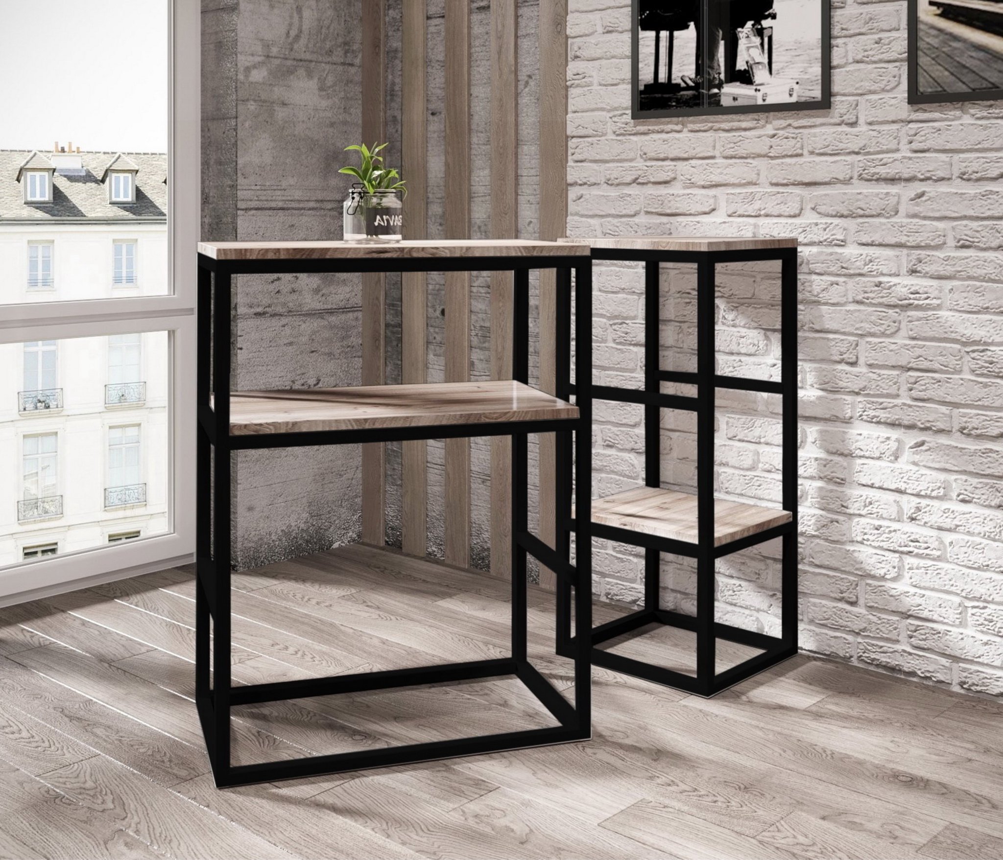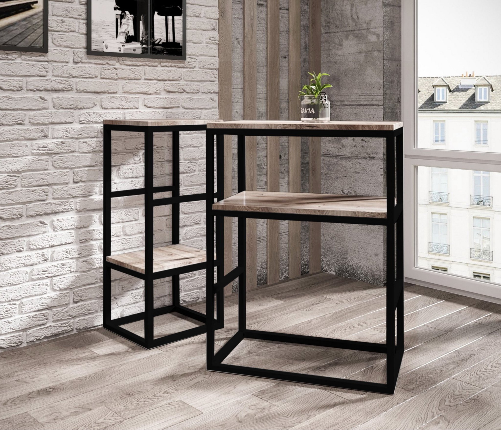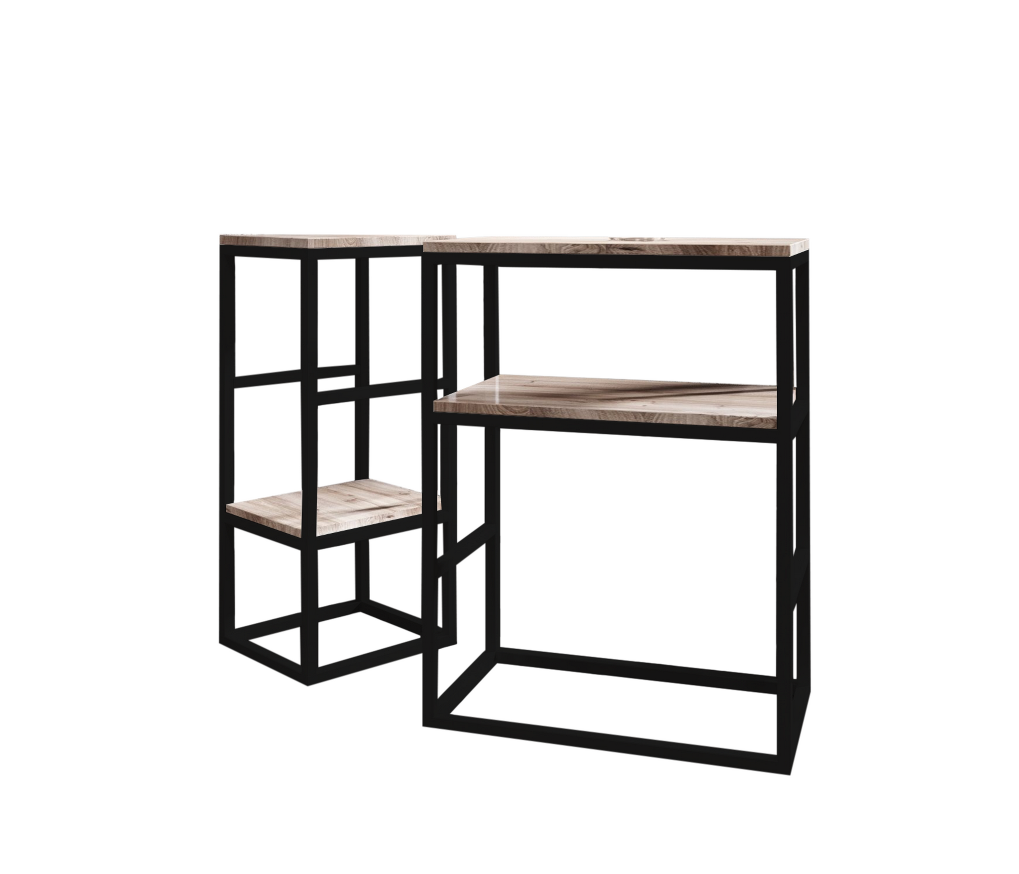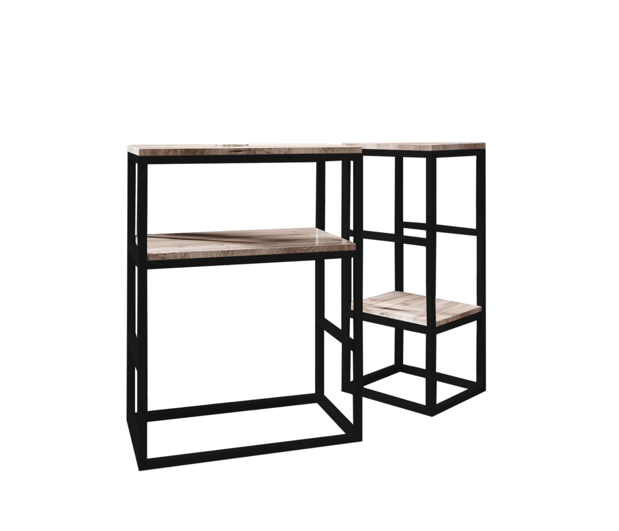 Каркас: профильная труба 20х20 мм.Прочное полимерно-порошковое покрытие черного, белого и серого цвета Дерево: массив сосны 20 мм, покрытое специальным маслом для мебели, цвета на выбор: бесцветный, белый, серый, махагон, орех, морёный дуб, черный, клён, черный графит, голубой графит, темное золото графит, золото графит.
