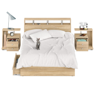Отзывы о Столплит Кровать с ящиками Камелия 1400 с двумя прикроватными тумбами Дуб Сонома