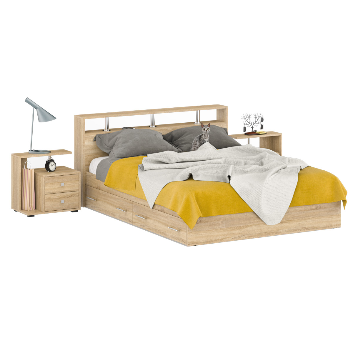 Отзывы о Столплит Кровать с ящиками Камелия 1600 с двумя прикроватными тумбами Дуб Сонома