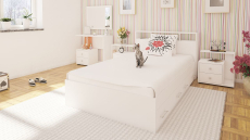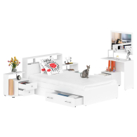 Спальня состоит из кровати с ящиками 1200, двух тумб и стола косметического с зеркалом - островок безмятежного наслаждения! Удобная кровать с трёхсторонним доступом к спальному месту размером 1200х2000 мм. - стильный подиум для комфортного отдыха. В основании кровати расположены два вместительных ящика для хранения постельных принадлежностей и личных вещей. Предусмотрена универсальная схема сборки бельевых ящиков - они могут быть установлены с правой или с левой стороны кровати. Основание под матрас в комплекте кровати (настил ДСП), матрас приобретается отдельно. Комплект из двух прикроватных тумб Камелия в правом и левом исполнении - креативный подход к оформлению зоны отдыха. Стильная и эргономически оправданная конструкции тумб добавит интерьеру модного щегольства. Стол косметический с зеркалом Камелия - мечта достойная Женщины! Компактный столик, глубиной всего 40 см., с двумя выдвижными ящиками, открытой нишей и удобной столешницей на хромированной стойке.