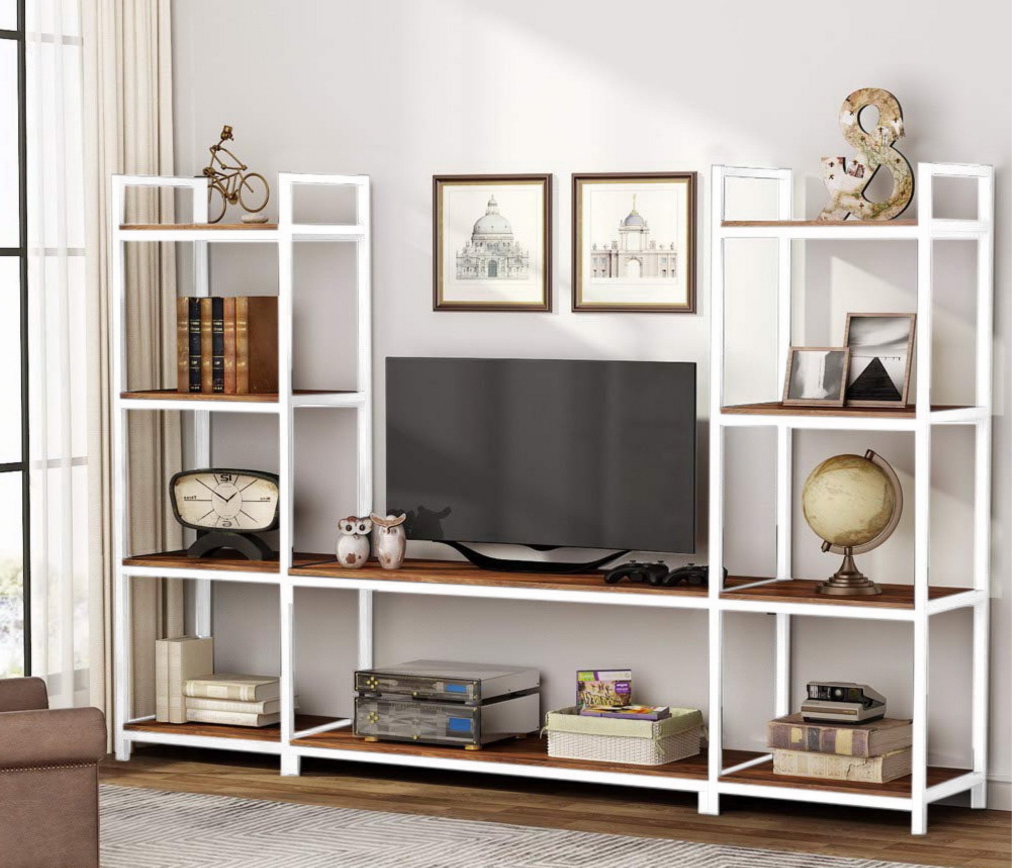 С ТВ тумбой , со стеллажом, глянцевые фасады, С полками