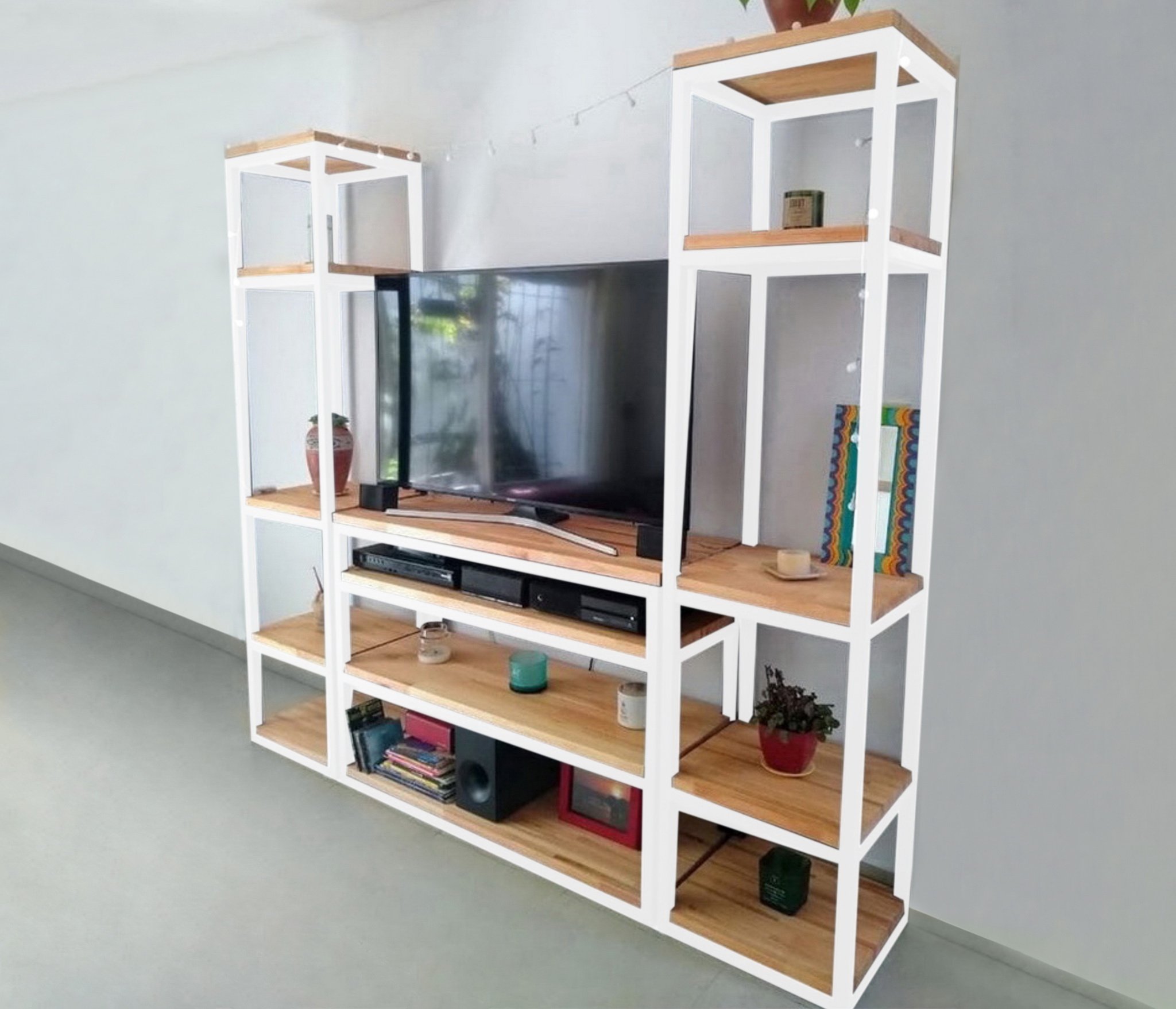 Каркас: профильная труба 20х20 мм.Прочное полимерно-порошковое покрытие черного, белого и серого цвета Дерево: массив сосны 20 мм, покрытое специальным маслом для мебели, цвета на выбор: бесцветный, белый, серый, махагон, орех, морёный дуб, черный, клён, черный графит, голубой графит, темное золото графит, золото графит.