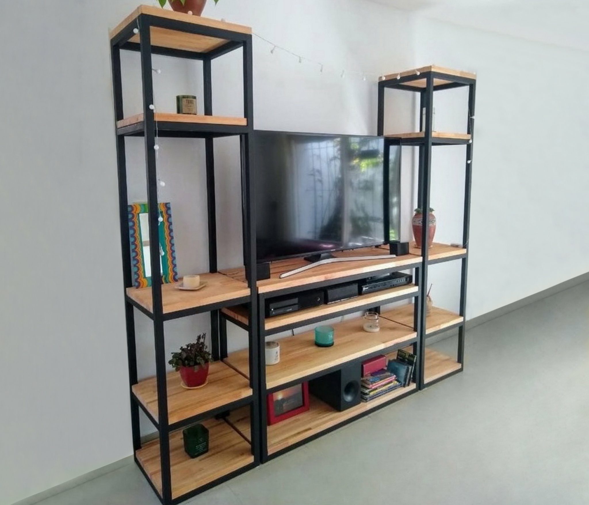 Каркас: профильная труба 20х20 мм.Прочное полимерно-порошковое покрытие черного, белого и серого цвета Дерево: массив сосны 20 мм, покрытое специальным маслом для мебели, цвета на выбор: бесцветный, белый, серый, махагон, орех, морёный дуб, черный, клён, черный графит, голубой графит, темное золото графит, золото графит.