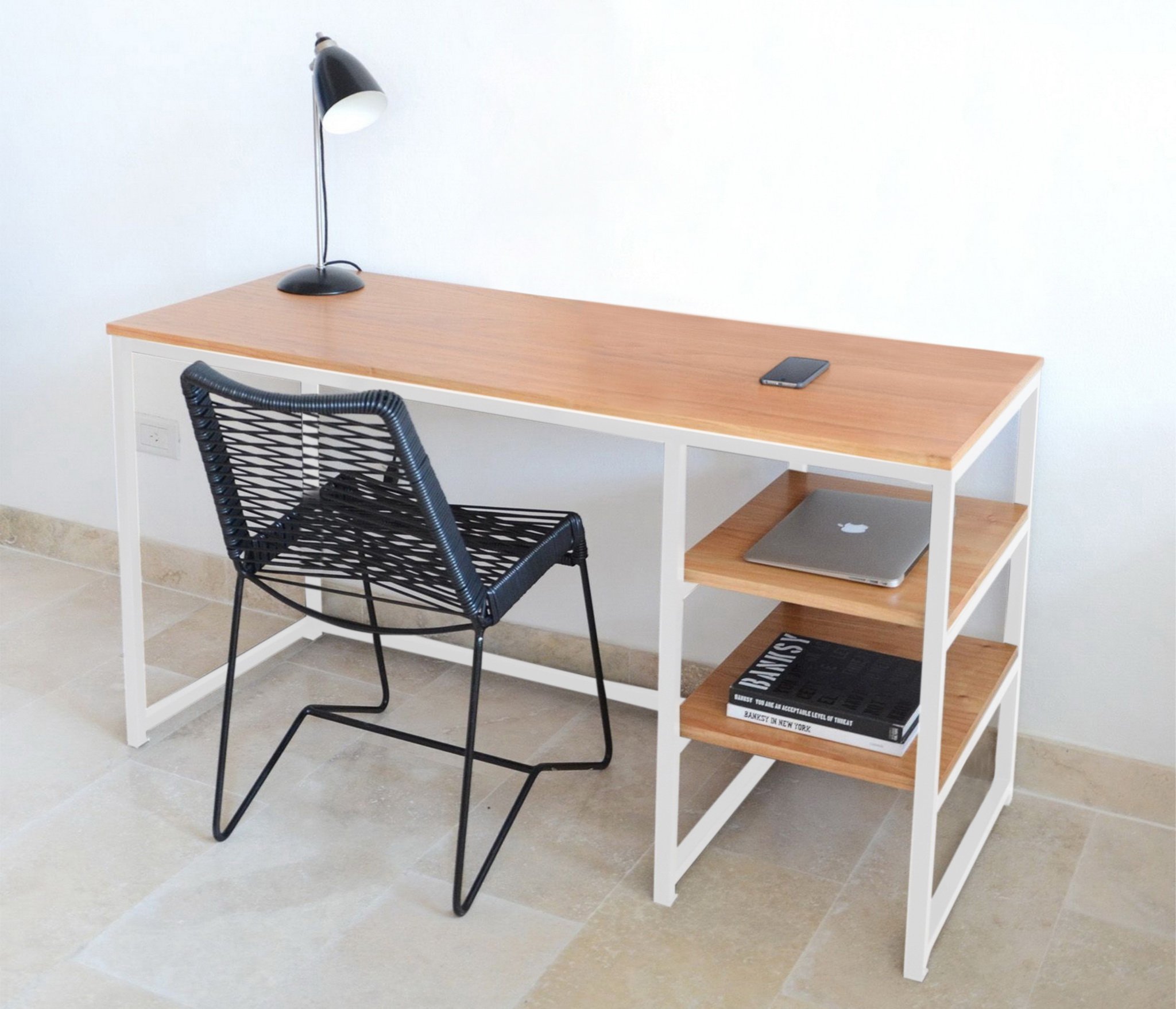 Каркас: профильная труба 20х20 мм.Прочное полимерно-порошковое покрытие черного, белого и серого цвета Дерево: массив сосны 20 мм, покрытое специальным маслом для мебели, цвета на выбор: бесцветный, белый, серый, махагон, орех, морёный дуб, черный, клён, черный графит, голубой графит, темное золото графит, золото графит.