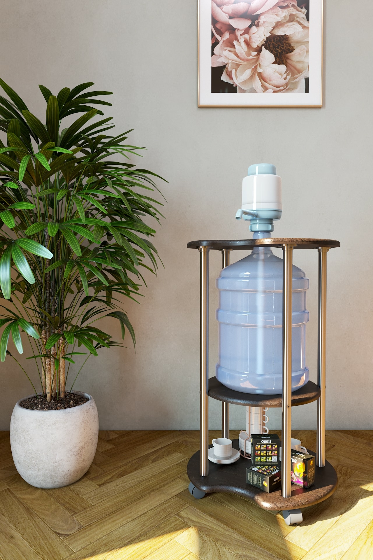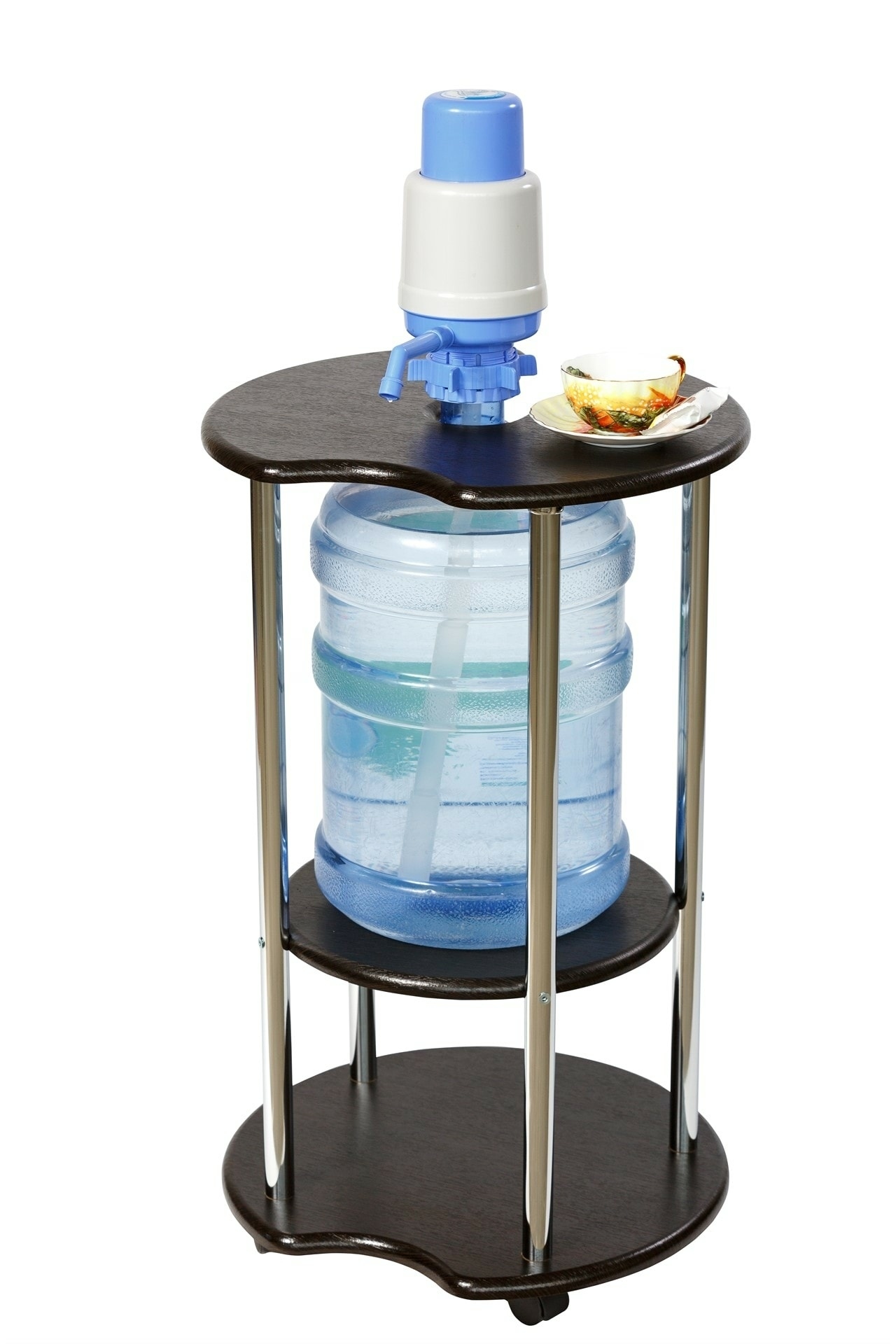 Подставки для воды-отличное решение проблемы размещения кулеров, бутылей дома или в офисе. Подставка под бутыль выполнена из материала МДФ 16 мм, опоры-хромированная труба. Высота 750 мм, ширина 450 мм.Подставка мобильна благодаря основанию на колесной опоре, которое дополнительно можно использовать в качестве полки.