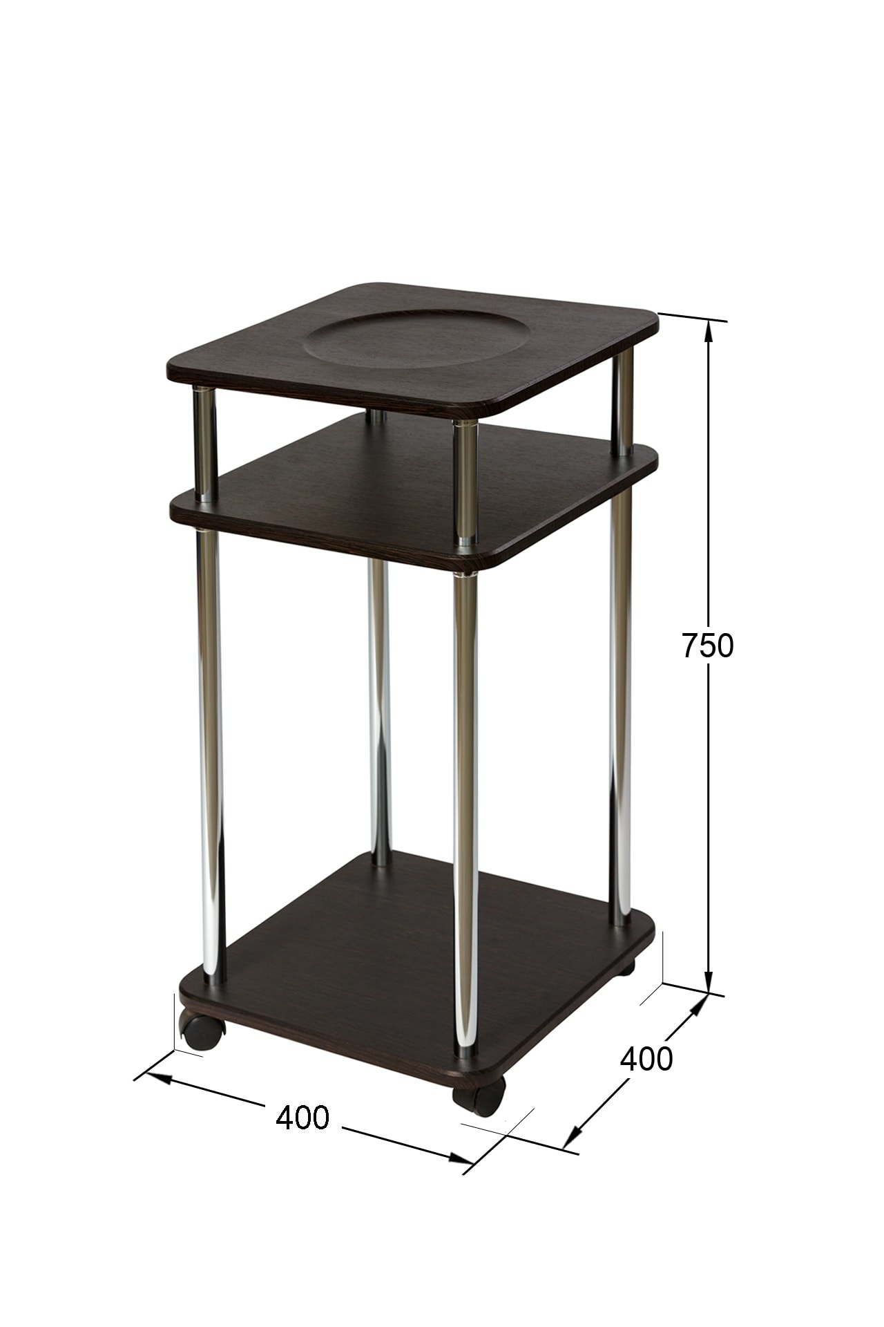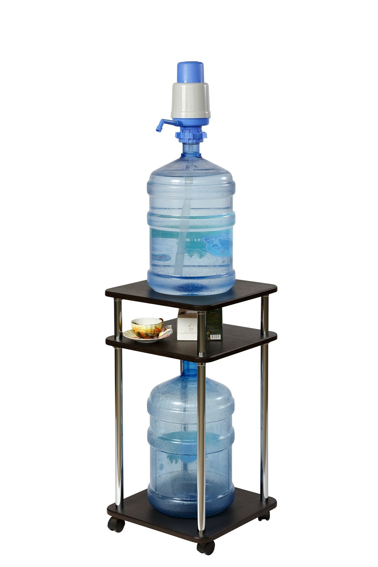 Подставки для воды-отличное решение проблемы размещения кулеров, бутылей дома или в офисе. Подставка под кулер выполнена из материала МДФ 16 мм, опоры-хромированная туба. Высота подставки 750 мм, основание, полка и столешница имеют квадратную форму размером 400х400 мм. Подставка мобильна благодаря основанию на колесной опоре. Данная модель дополнена регулируемой по высоте полкой. Подставка рассчитана на кулер с бутылью и еще на одну запасную бутыль, что очень важно для экономии места дома или офиса.
