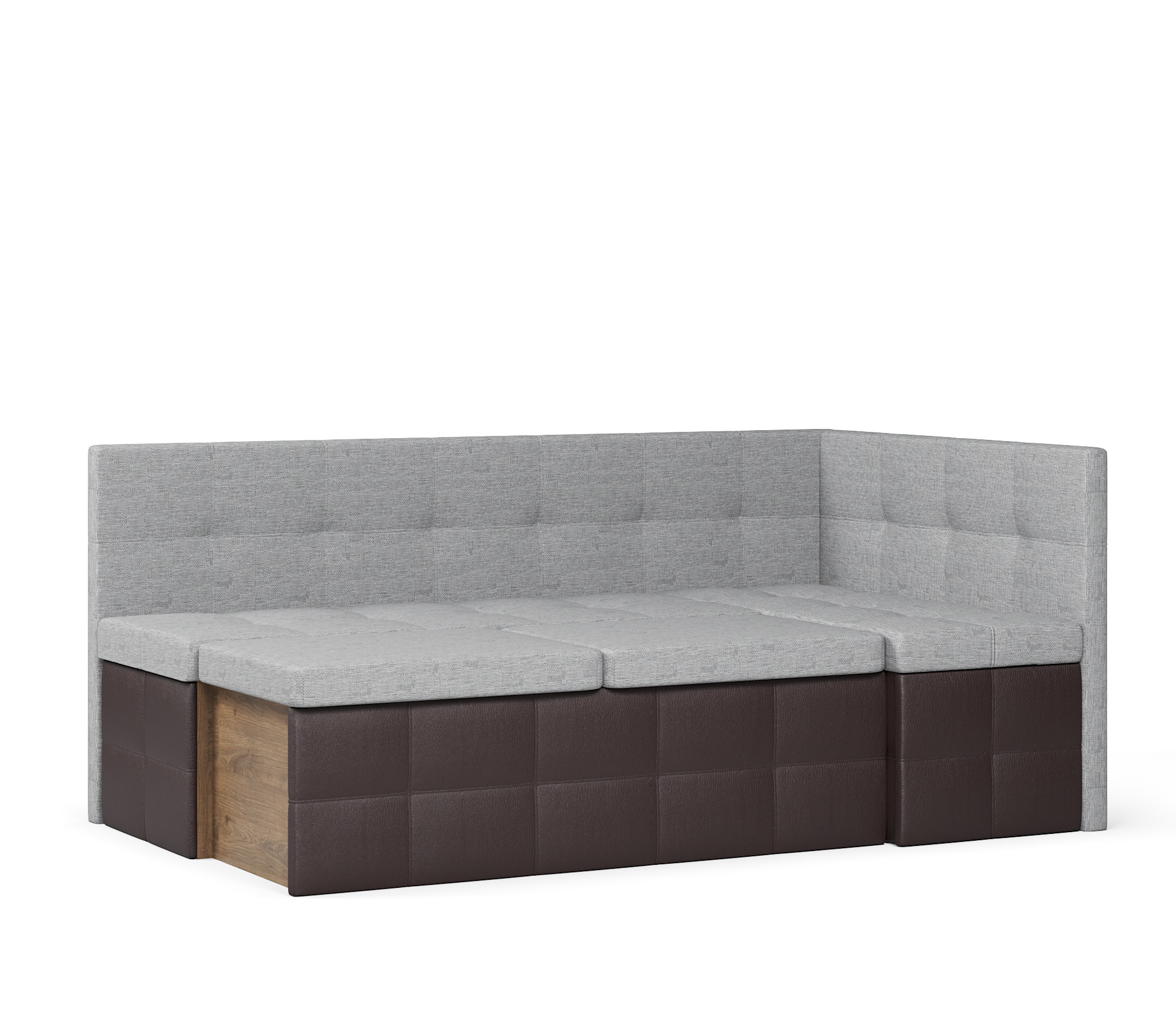 Диван кухонный угловой Домино выкатной, рогожка+экокожа (Серый) Код I0000298663