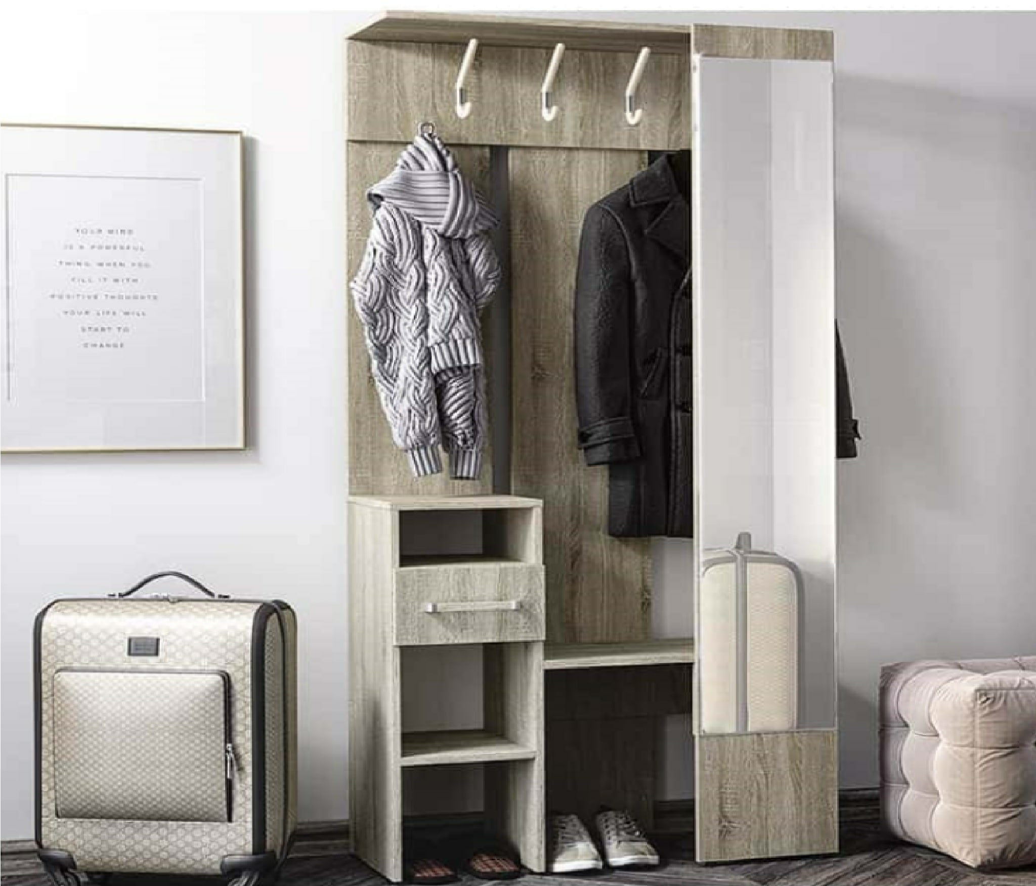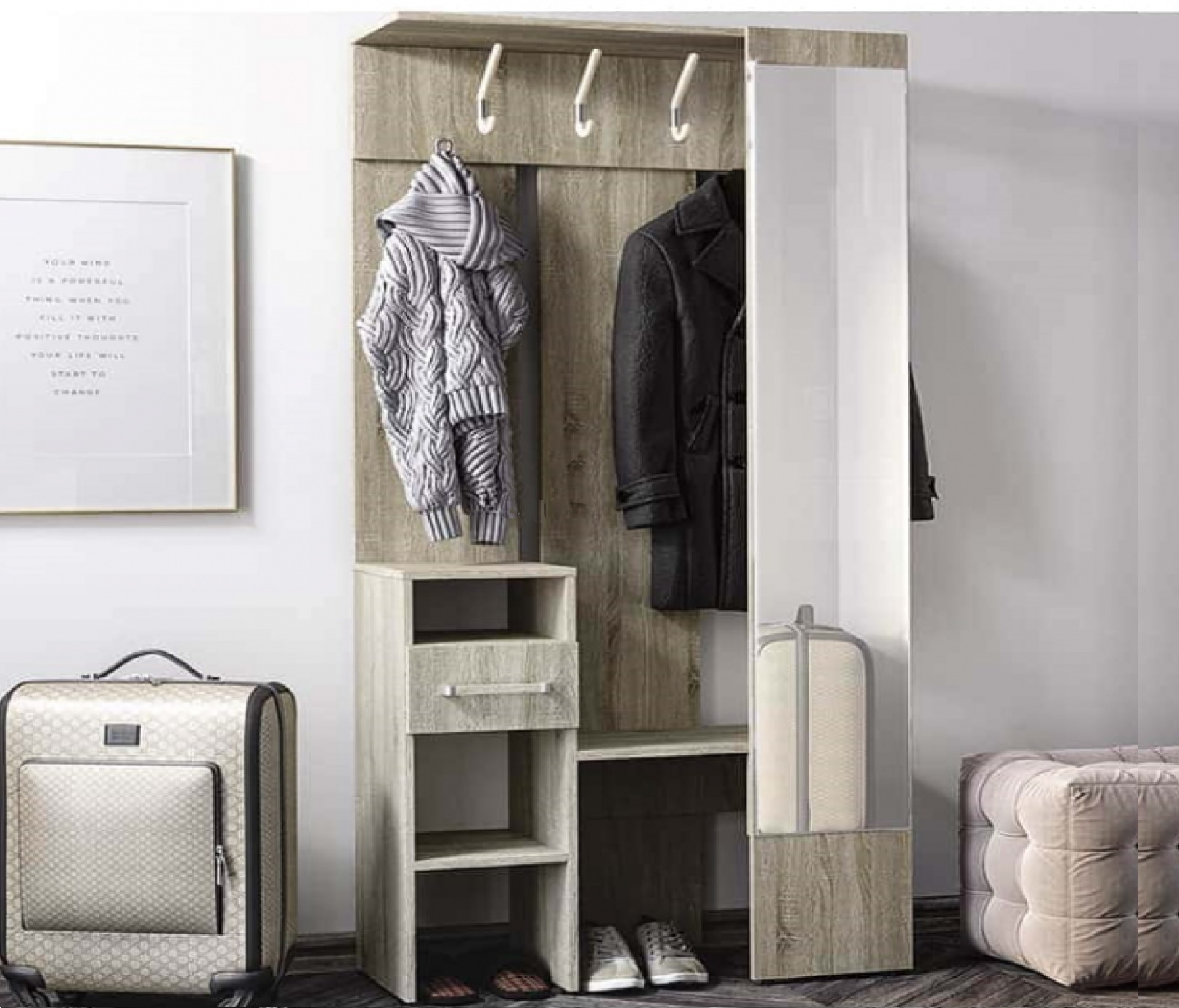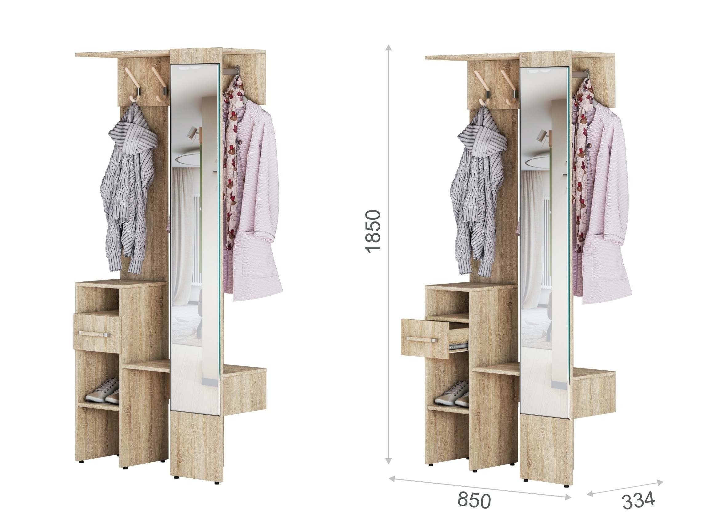 Модель "Лига" выглядит компактно и обладает всем необходимым функционалом. Изящность линий гармонично сочетается с теплым оттенком и фактурой дерева. Прихожая «Лига» создана для того, чтобы Вы чувствовали домашний уют уже на пороге Вашего дома.Модуль универсален, собирается на левую и на правую сторону.