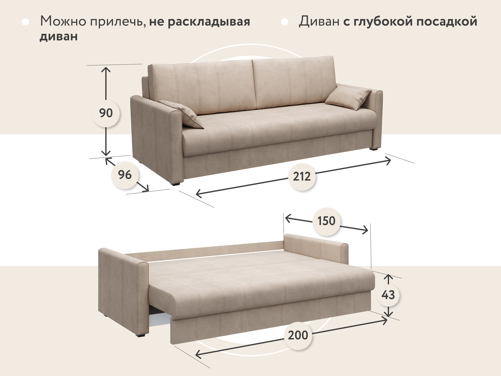 Ширина спального места в не разобранном состоянии маленькое, всего 75см, из-за чего взрослому будет неудобно спать, нужно будет всегда раскладывать диван.