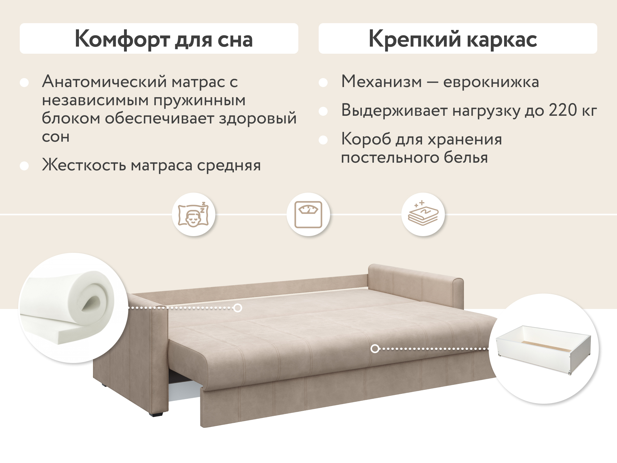 Ширина спального места: 1500 мм;