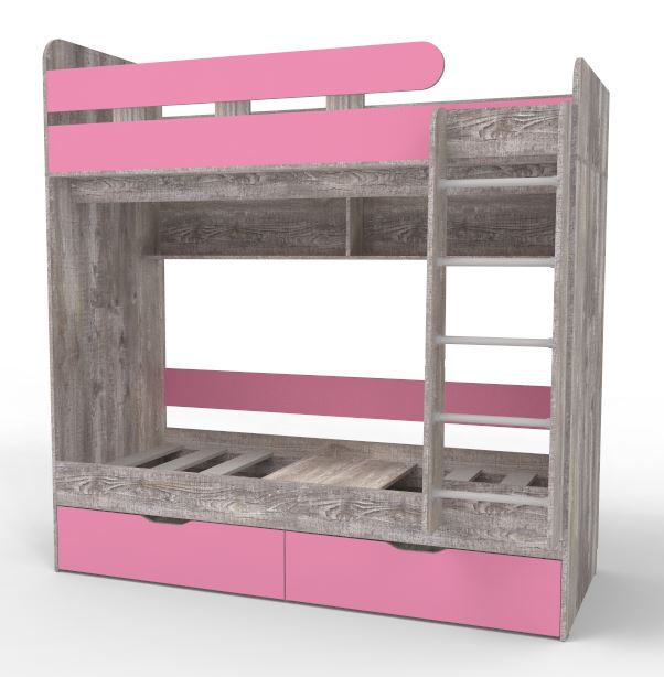 Двухъярусная кровать Юниор 5 80x160 Бетон (Розовый)