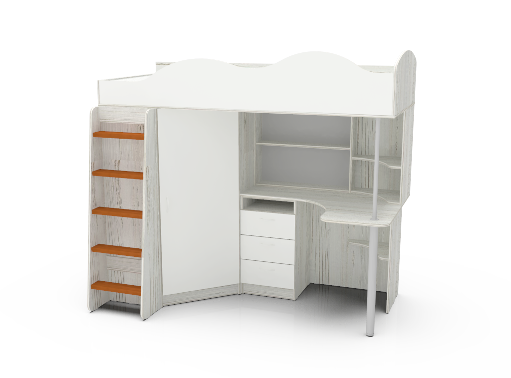 Кровать чердак Пионер включает в себя: Компьютерный стол с множеством стеллажей Тумба с ящиками для письменных принадлежностей Небольшой, но глубокий шкафчик для одежды и обуви, стоящий под углом оснащён перекладиной для вешалок и полочками Деревянная лестница. Цвет кромки на цветных фасадах - бежевый. Бортик среднего размера, сделанный в форме волн, защитит ребёнка от случайных падений Качественные материалы и удачная комбинация цвета фасадов и основной конструкции, обеспечат безопасность, долговечность и сохранят привлекательный внешний вид. Сборка универсальная. Матрасы в стоимость не входят. - Хотите заказать сборку нашими специалистами? Отлично, мы соберем вам кровать одновременно с доставкой! - Хотите собрать кроватку сами? Нет ничего проще, просто вооружитесь инструкцией и посмотрите наше видео! Ваш ребенок по достоинству оценит комфорт, который несет вам кровать-чердак с рабочей зоной Пионер. Кровать чердак Пионер - это удобная и компактная мини детская комната для Вашего ребенка со спальным местом наверху и рабочей зоной внизу. Матрас для кровати вы можете приобрести отдельно в разделе детских матрасов. Так же мы предлагаем ниже в разделе Аксессуары наиболее оптимальные варианты для данной кровати. *Предприятие-изготовитель оставляет за собой право вносить изменения в конструкцию изделия с целью улучшения технологических и экспутационных свойств мебели. *Ограничение по нагрузке на лестницу до 60 кг.
