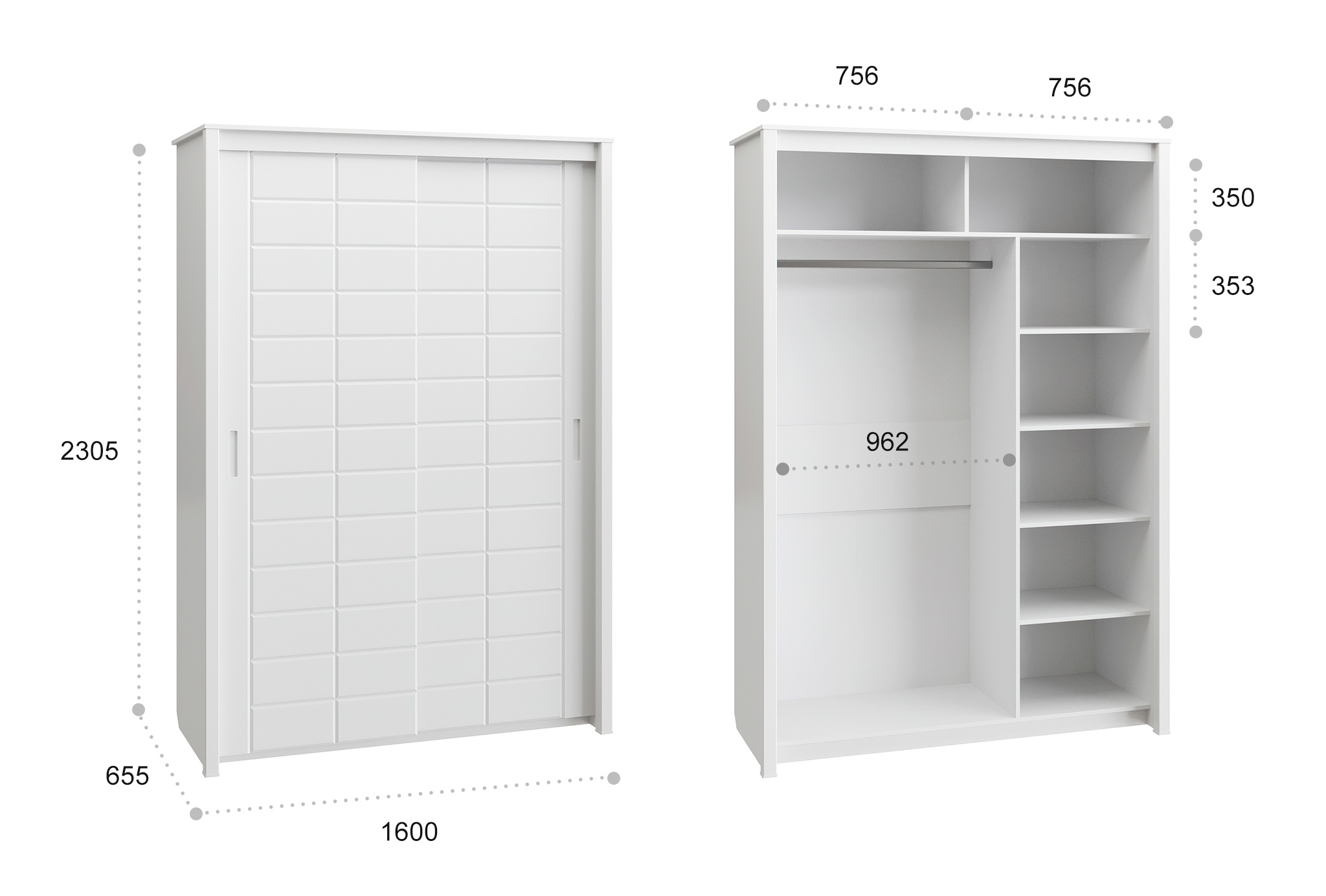 Размеры модуля (ш/в/г) вмм: 1600х2305х655.Материал корпуса/фасада: ЛДСП, МДФ.