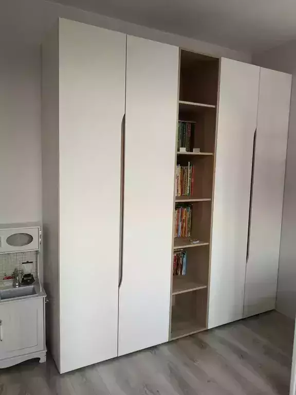 В этот комплект входят два шкафа Муссон 13.198 и открытый стеллаж Муссон 13.349. За распашными дверками шкафа оборудованы три отделения - нижнее с ящиками, верхнее с антресольной полкой и центральное со штангой для одежды на вешалках и полками. Два вместительных внутренних ящика на шариковых направляющих послужат отличным комодиком для деликатных вещей и белья. Центральное отделение со штангой для одежды на вешалках и полками может быть собрано на любую сторону. На обратной стороне двери размещается зеркало. Стеллаж оборудован пятью поками для хранения вещей и элементов декора. Мебель выполнена из прочной ламинированной ДСП 16 мм, торцы деталей закромлены плёнкой ПВХ 0,4-2 мм. Поставляется в разобранном виде, надёжно упакованной в гофрокартон, с приложенной подробной инструкцией по сборке. Открытый стеллаж и два шкафа для одежды Муссон - элементы из набора мебели для спальни Муссон.