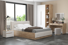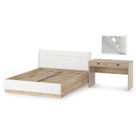 Кровать Муссон с подъёмным ортопедом и стол Бостон с зеркалом - отличное решение для небольшой спальни.
