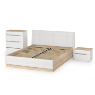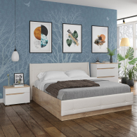 В этот комплект входит двуспальная кровать Муссон 11.28, прикроватная тумбочка и комод Муссон 13.97. Выбирая двуспальную кровать Муссон, Вы выбираете крепкий сон и уют. Объёмная прямоугольная стежка на изголовье и изножье, украшенная рядом пуговиц, добавляют кровати Муссон визуальной гармонии. Изголовье кровати установлено с небольшим наклоном, что позволит в комфортной позе читать или сидеть на кровати. Обивка кровати Муссон 11.28ПОД выполнена из модной, удобной в эксплуатации искусственной кожи. Мягкими элементами у кровати являются изножье и изголовье. Комбинация сочетания цвета кровати с нежными светлыми акцентами обивки придают мебели выразительную элегантность. Корпус кровати оборудован подъемным ортопедическим основанием, которое обеспечивает доступ к трем коробам для белья. Матрас для этой кровати преобретается отдельно. Спальное место размером 1600х2000 мм. даст вам возможность отдыхать на двуспальной кровати в нескончаемом комфорте. Тумбочка прикроватная оборудована двумя удобными выдвижными ящиками на шариковых направляющих полного выдвижения. Установлена на пластиковые опоры защищая поверхность пола от механических повреждений. Не универсальная сборка - собирается только так, как представлено на изображениях. Компактный комод с четырьмя вместительными выдвижными ящиками на шариковых направляющих полного выдвижения. У фасадов нет фурнитуры, она заменена стильными ручками-вырезами. Вырезы делают внешний вид изделий асимметричным, что делает композицию современной и динамичной. Мебель выполнена из ламинированной ДСП 16 мм, торцы деталей закромлены плёнкой ПВХ 0,4-2 мм. Поставляется в разобранном виде, надёжно упакованной в гофрокартон, с приложенной подробной инструкцией по сборке.