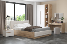 В этот комплект входит 5 предметов мебели - двуспальная кровать Муссон 11.28, прикроватная тумба, шкаф двухстворчатый 13.198 и Столик Бостон с зеркалом. Выбирая двуспальную кровать Муссон, Вы выбираете крепкий сон и уют. Объёмная прямоугольная стежка на изголовье и изножье, украшенная рядом пуговиц, добавляют кровати Муссон визуальной гармонии. Изголовье кровати установлено с небольшим наклоном, что позволит в комфортной позе читать или сидеть на кровати. Обивка кровати выполнена из модной, удобной в эксплуатации искусственной кожи. Мягкими элементами у кровати являются изножье и изголовье. Корпус кровати оборудован подъемным ортопедическим основанием, которое обеспечивает доступ к трем коробам для белья. Спальное место размером 1600х2000 мм. Матрас для этой кровати преобретается отдельно. Тумбочка прикроватная оборудована двумя удобными выдвижными ящиками на шариковых направляющих полного выдвижения. Установлена тумба прикроватная Муссон 16.03 на пластиковые опоры защищая поверхность пола от механических повреждений. Не универсальная сборка - собирается только так, как представлено на изображениях. За распашными дверками шкафа оборудованы три отделения - нижнее с ящиками, верхнее с антресольной полкой и центральное со штангой для одежды на вешалках и полками. Два вместительных внутренних ящика на шариковых направляющих послужат отличным комодиком для деликатных вещей и белья. Центральное отделение со штангой для одежды на вешалках и полками может быть собрано на любую сторону. На обратной стороне двери размещается зеркало. Туалетный столик Бостон 12.69 имеет вместительную столешницу, которая разместит и аксессуары для наведения красоты и настольную лампу. Под столешницей на шариковых металлических направляющих закреплены два выдвижных ящика. Классический дизайн, элегантный цвет стола позволит с успехом интегрировать его в обстановку классической спальни. Большое навестное зеркало в раме повысит уровень комфорта в спальне, оживит интерьер магией блеска и света. Можно размещать как горизонтально, так и вертикально. Мебель выполнена из прочной ламинированной ДСП 16 мм, торцы деталей закромлены плёнкой ПВХ 0,4-2 мм. Поставляется в разобранном виде, надёжно упакованной в гофрокартон, с приложенной подробной инструкцией по сборке.