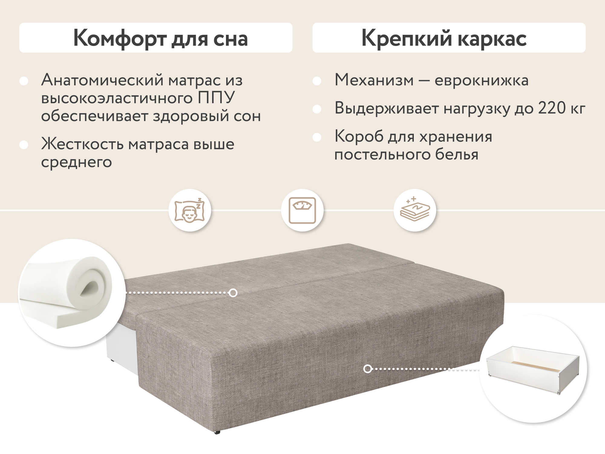 Ширина спального места: 1400 мм;