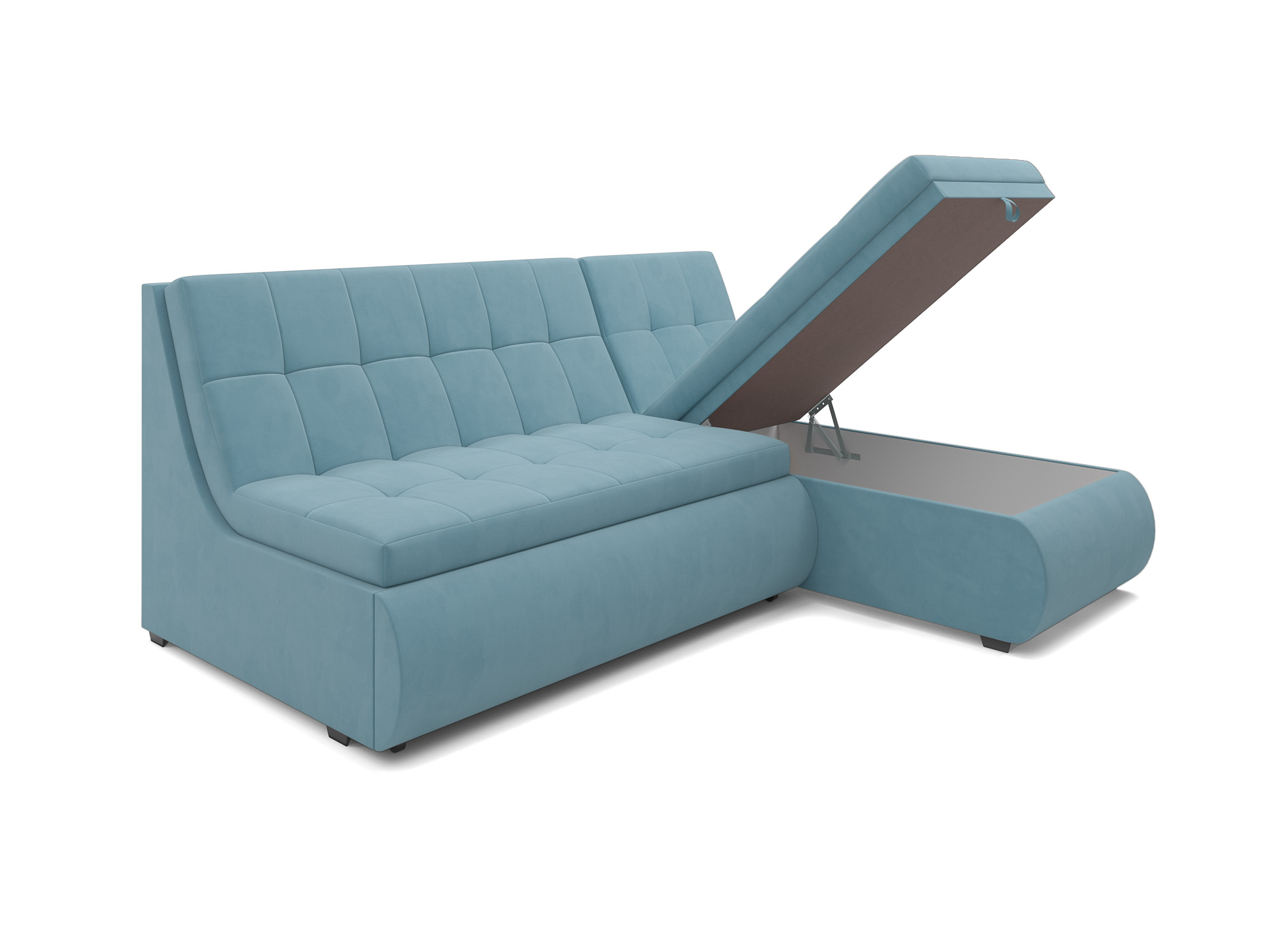 Удобство использования дивана «Дубай» дополняется ящиком для хранения, который расположен внутри угловой части. В него можно положить небольшие вещи или постельные принадлежности, сохраняя порядок и экономя пространство.