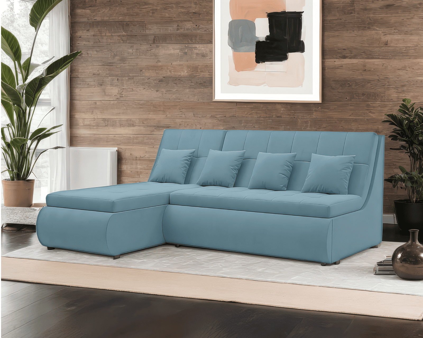 «Дубай» легко может изменить свою конфигурацию, чтобы адаптироваться под ваше пространство. Угловая конфигурация универсальна, поэтому вы можете разместить оттоманку с удобной стороны для вас.