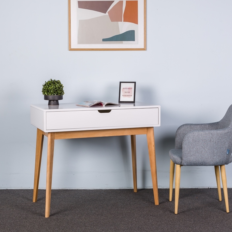 Стол письменный Nikko станет украшением вашего дома. Ножки столика выполнены из массива натурального дерева. Столешница, износостойкая, выполнена из ЛДСП в белом цвете.