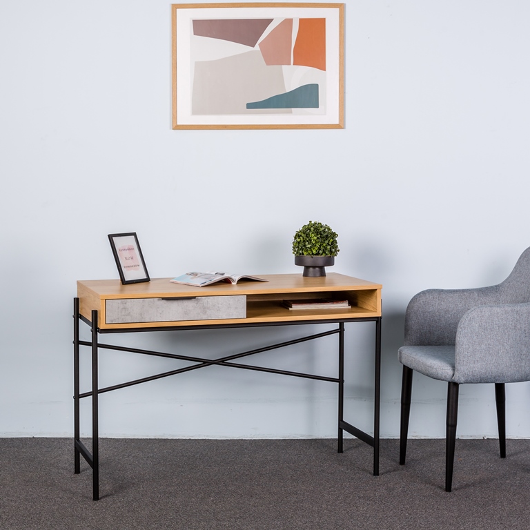 Стол письменный Plato станет украшением вашего дома. Ножки столика выполнены из металлического профиля, окрашенного порошковой краской. Столешница, износостойкая, выполнена из ЛДСП.