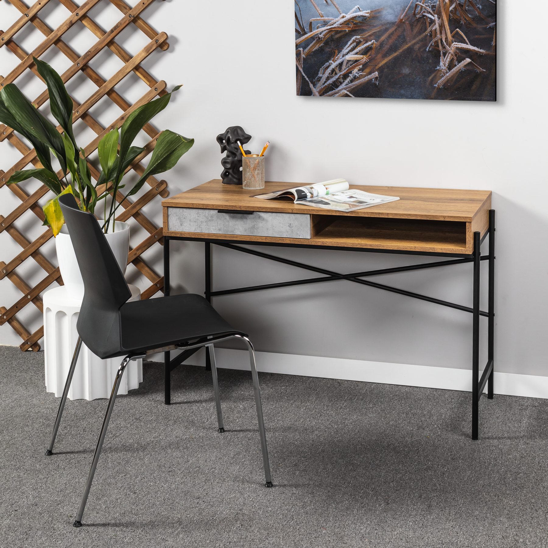 Стол письменный Plato станет украшением вашего дома. Ножки столика выполнены из металлического профиля, окрашенного порошковой краской. Столешница, износостойкая, выполнена из ЛДСП.