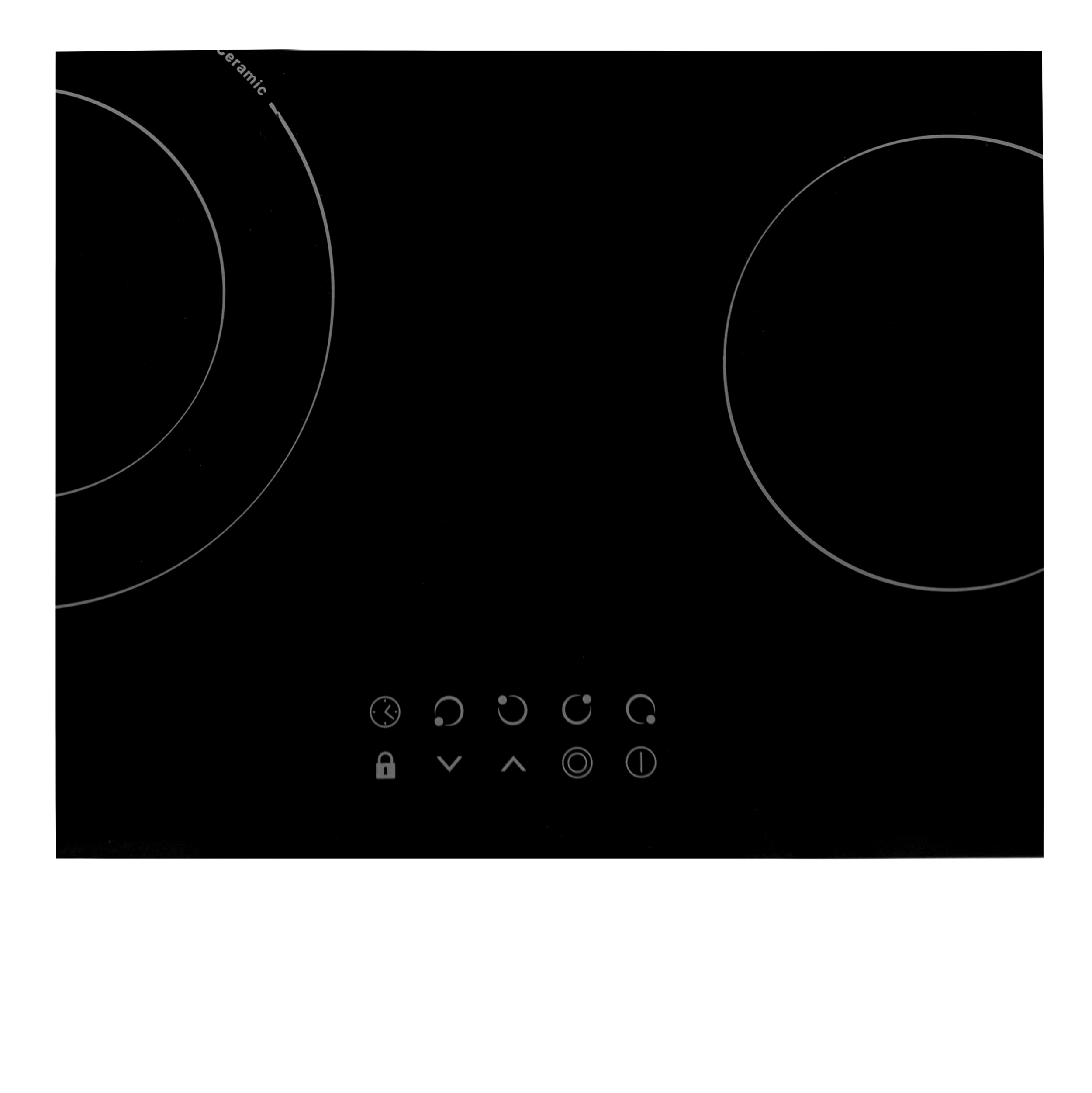 Варочная панель электрическая, стеклокерамика, Hi Light, 60 см, 4 конфорки, сенсорное управление, 9 уровней мощности, таймер 1-99 мин, блокировка управления, защитное отключение, двухконтурная, 6400 Вт, черное стекло, 590х520х50 мм.