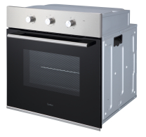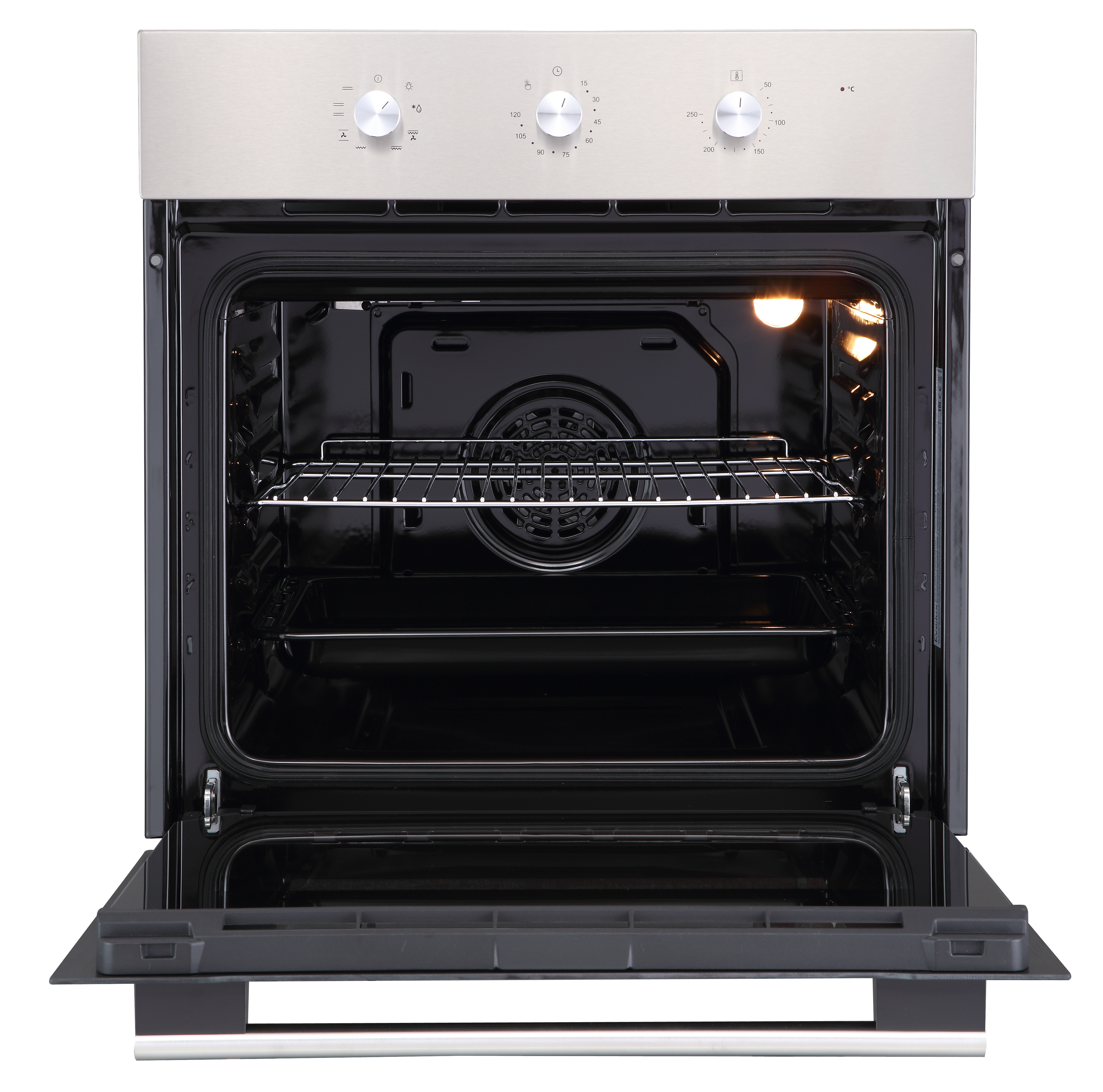 Электрический духовой шкаф встраиваемый полноразмерный, 60 см, 8 режимов, объем духовки 65л, поворотные переключатели, панель управления - нержавеющая сталь, универсальный противень, решетка-гриль, двойное стекло дверцы, легко-съемное большое внутреннее стекло Full Glass, защитное отключение, охлаждающий вентилятор, таймер 2 часа, 595х575х595 мм.