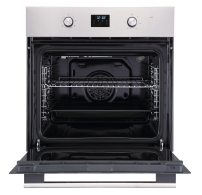 Электрический духовой шкаф встраиваемый полноразмерный, 60 см, 8 режимов, объем духовки 70л, утапливаемые переключатели, дисплей Snow White, хромированные боковые решетки, панель управления - нержавеющая сталь, универсальный противень, решетка-гриль, двойное стекло дверцы, легко-съемное большое внутреннее стекло Full Glass, защитное отключение, охлаждающий вентилятор, электронный таймер 10 часов, 595х575х595 мм.