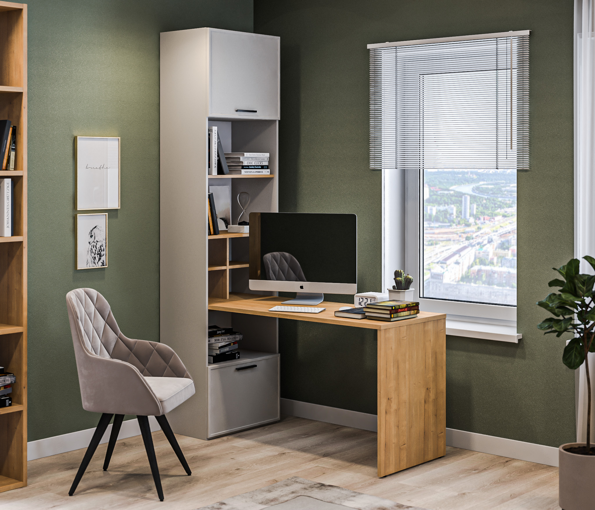 Отзывы о Столплит Стеллаж со столом Милан СБ-3261 Серый,Дуб Гамильтон/МДФ Светло серый Серый,Дуб Гамильтон
