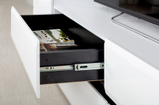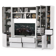 Мебель для гостиной Сидней № 32 из тумбы для ТВ, навесной полки, двух шкафов-витрин и шкафа с дверками и ящиком. Тумба под ТВ Сидней 13.63 оборудована четырьмя выдвижными ящиками на шариковых направляющих, что обеспечивает легкое открывание. Шкаф Сидней 13.202 состоит из верхнего и нижнего отделений с полками за дверками и выдвижным ящиком по центру. В верхнем отделении три полки, в нижнем 1 полочка. Шкаф-витрина Сидней 13.201, в комплектации 2 единицы, конструктивно разделён на два отделения за распашными дверками - верхнее и нижнее. Верхнее отделение со стеклянной дверкой, за которой располагаются три стеклянные полки. За глухой дверкой нижнего отделения имеется одна полочка. Сторону открывания дверей обоих шкафов, Вы определяете при сборке. Навесная полка Сидней 15.57, в комплектации 2 единицы, представляет из себя широкую нишу, разделенную на 3 ассиметричных отделения. Задняя стенка полки чёрного цвета эффектно подчеркивает наполнение полки. Полка имеет универсальную сборку - разделители внутри полки можно установить как слева, так и справа. Лаконичные белые глянцевые фасады из МДФ 16 мм создают ощущение чистоты и свежести, лёгкости, свободного пространства. Акцентом выступают чёрные горизонтальные вставки между фасадами. Фасады могут открываться за край, либо нажатием, с помощью механизма Push-to-Open, позволяющий отказаться от использования ручек. Распашные фасады оснащены доводчиками, что обеспечивает плавное закрывание и исключает удар о корпус. Мебель выполнена из прочной ламинированной ДСП 16 мм, торцы деталей закромлены плёнкой ПВХ 0,4-2 мм. Фасады выполнены из МДФ 16 мм белый глянец и тонированного стекла. Изображения мебели для гостиной Сидней № 32 Вы можете найти выше в начале страницы. Коллекция Сидней - современный дизайн, технологичноть и надежность.